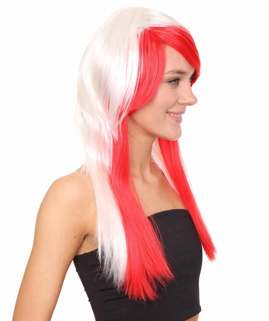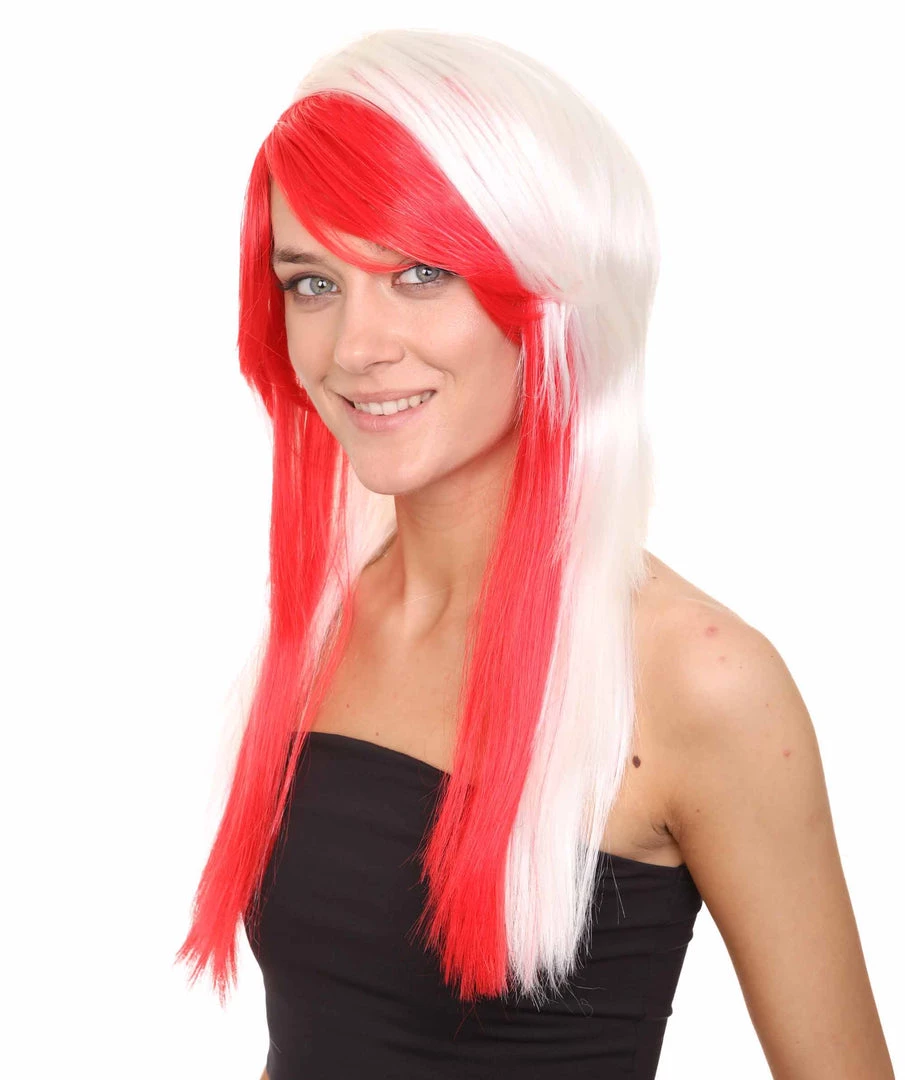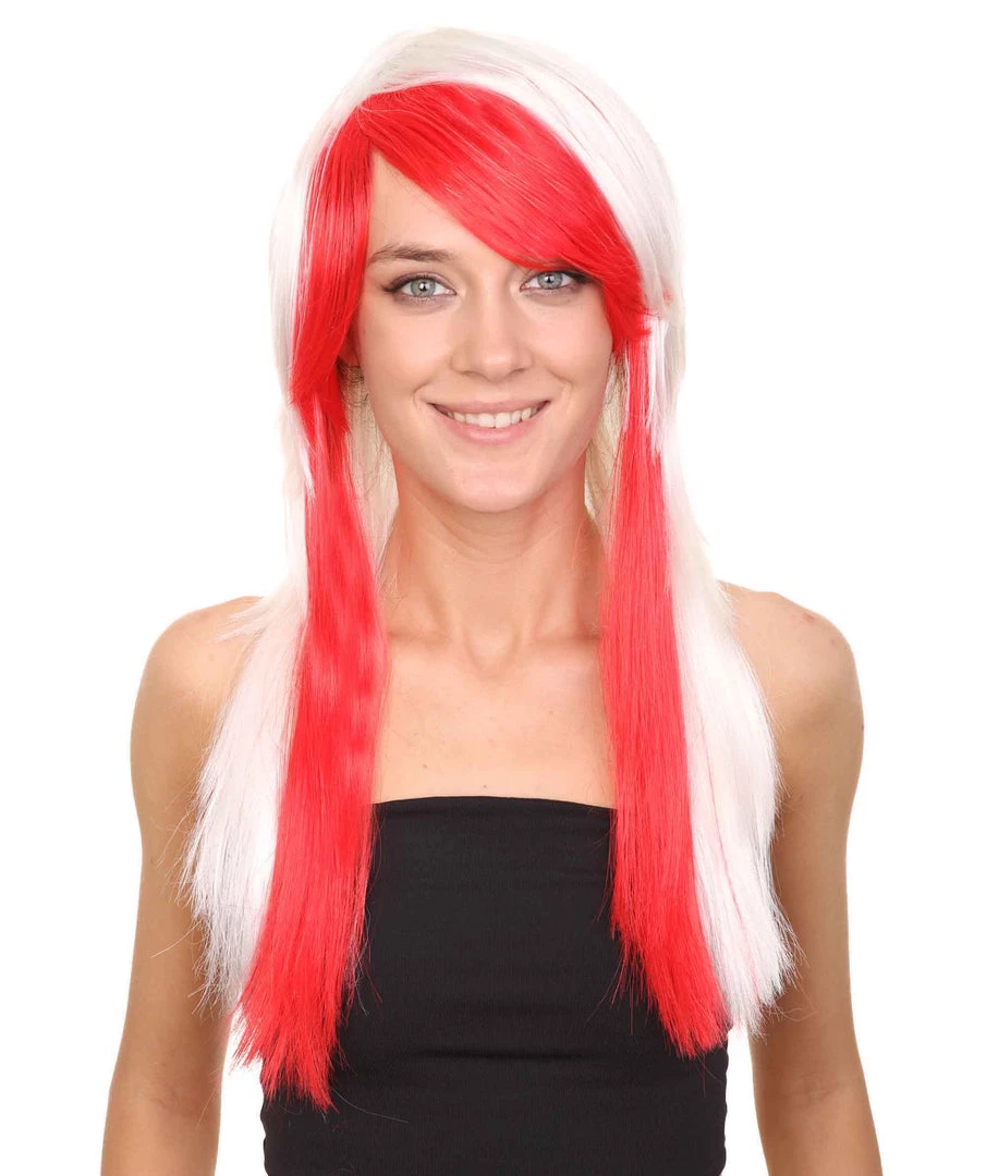 HPO Japanese Cosplay Womens Wig | Red White Two Toned Long Wig | Premium Breathable Capless Cap Men’s