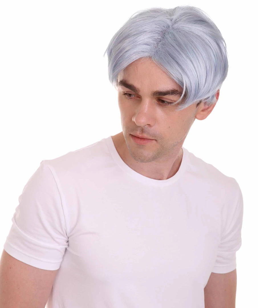 HPO K-Pop | Men’s Short Straight Middle Part Grey K Pop Cosplay Wig | Premium Breathable Capless Cap