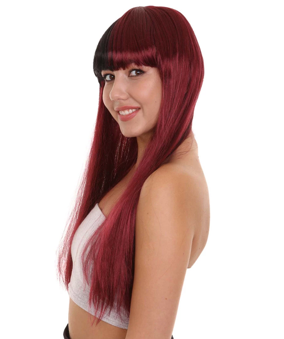 HPO Long Black And Red Womens Wig | Movie Character Cosplay Halloween Wig | Premium Breathable Capless Cap