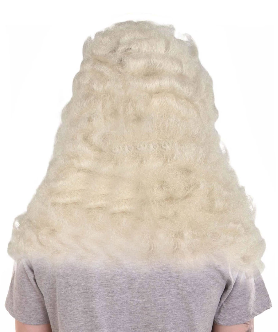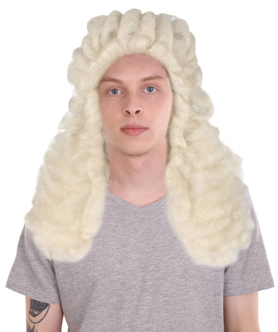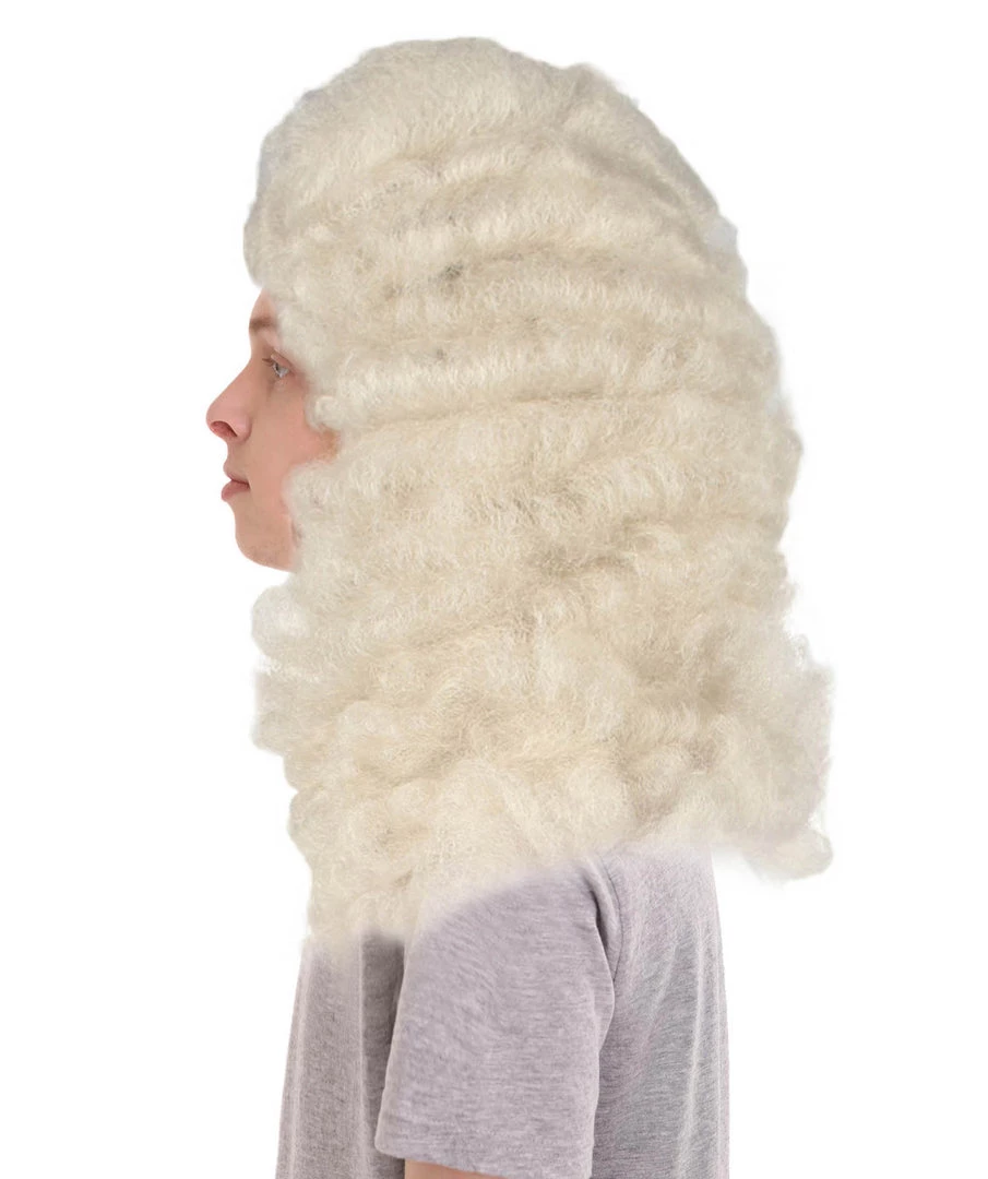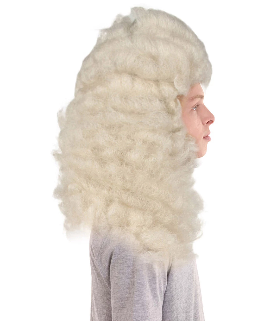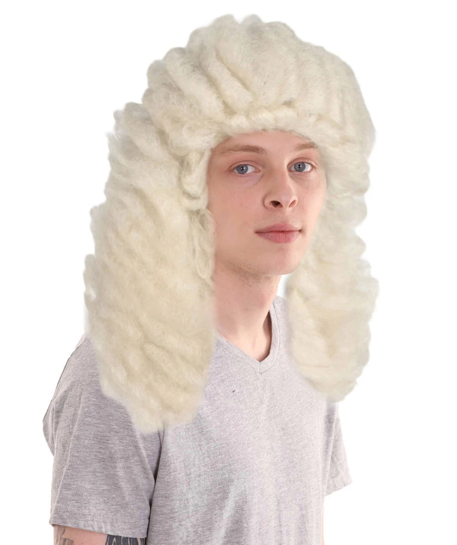 HPO Men Colonial Judge Wavy Curly Long White Wig | Premium Breathable Capless Cap Men’s