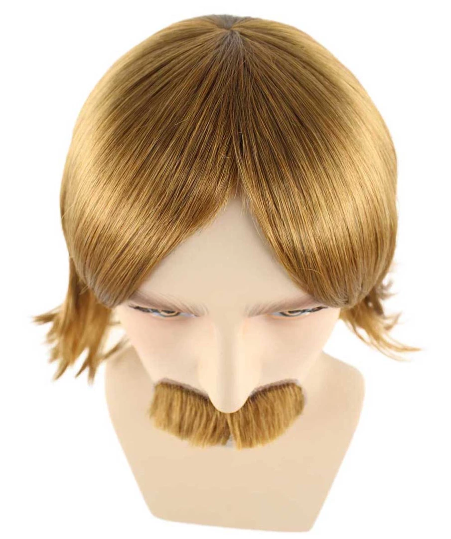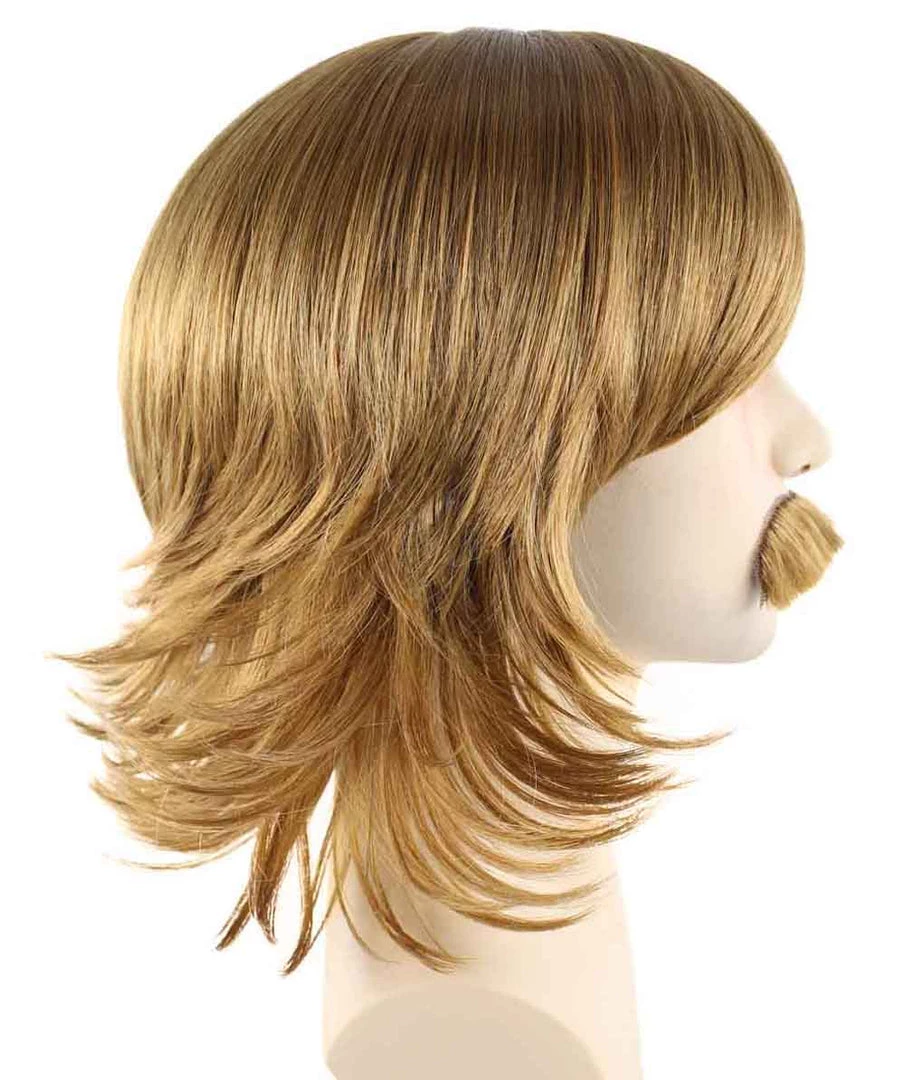 HPO Men’s 70’s Disco Mens Wig & Mustache | Blonde Retro Wig | Premium Breathable Capless Cap