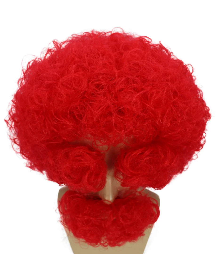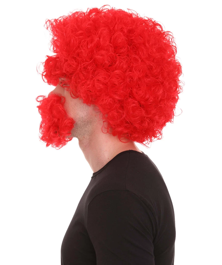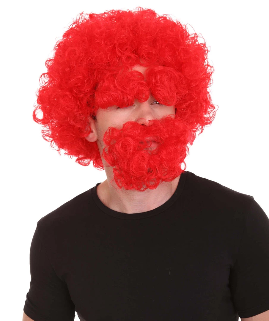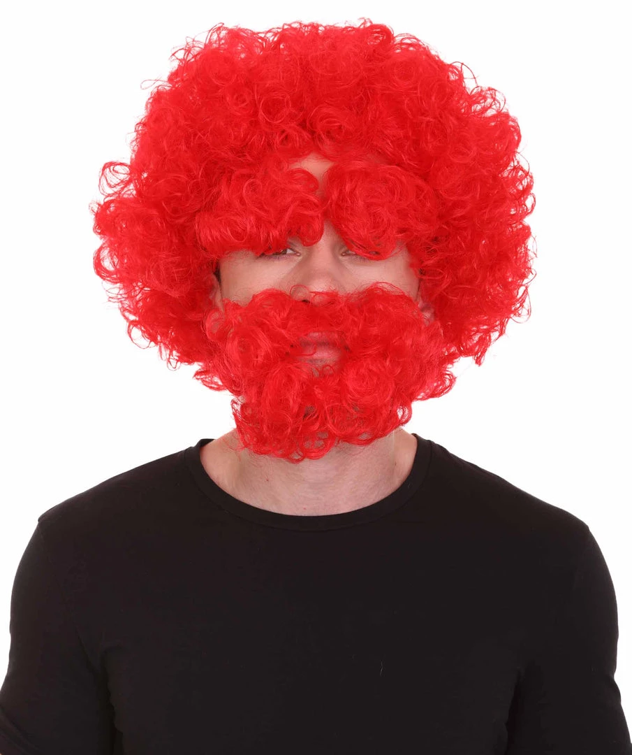HPO Men’s Afro Wig With Eyebrow Full Mustache And Beard Set Red | Halloween Wig