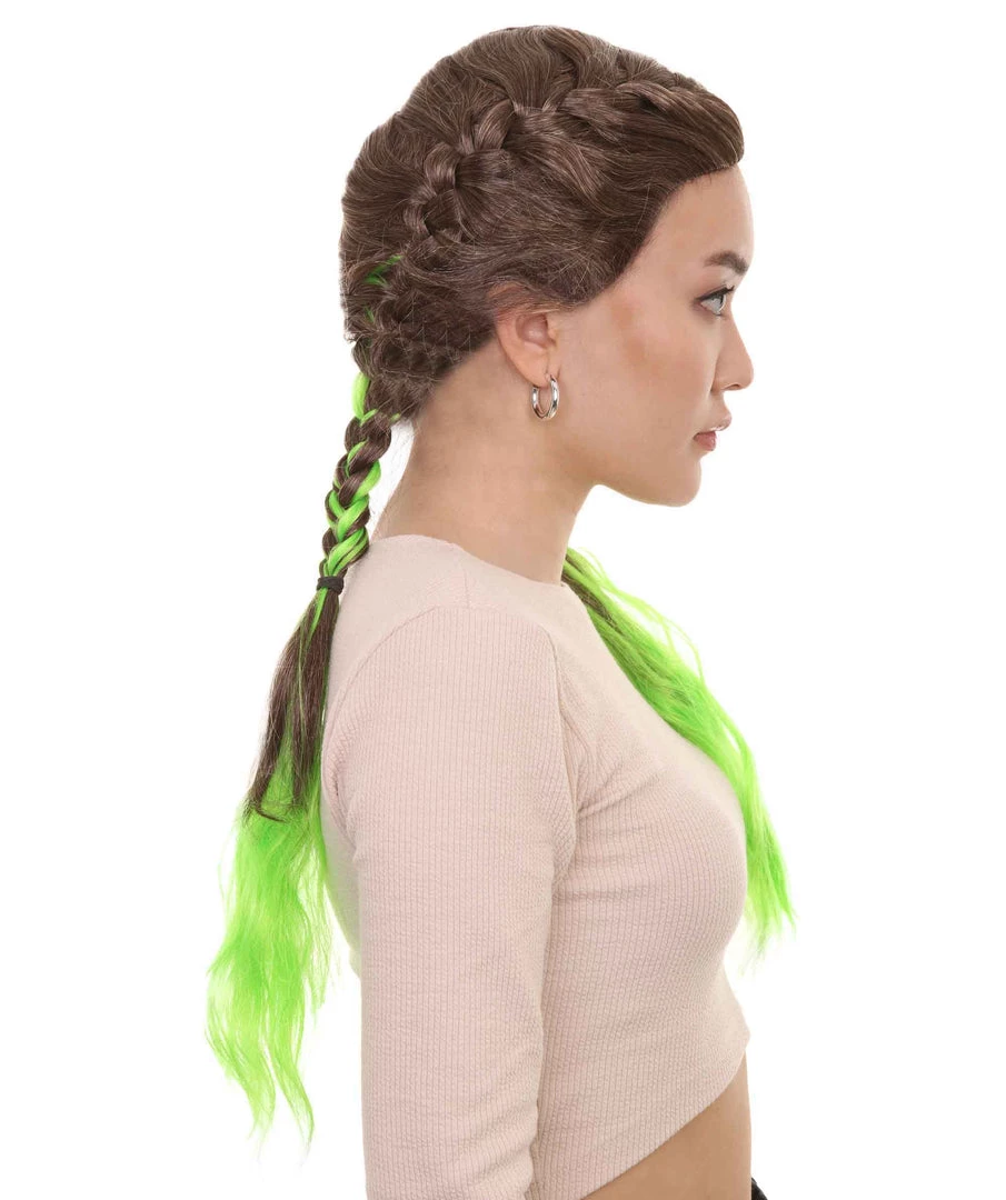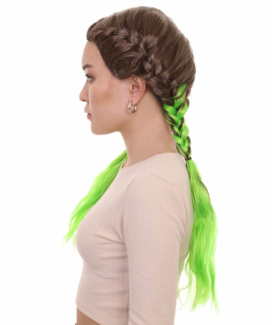 HPO Men’s Briaded Womens Wig | Brown Green Cosplay Halloween Wig | Premium Breathable Capless Cap