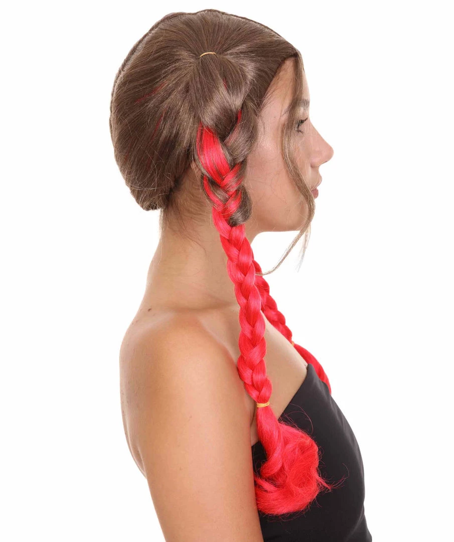 HPO Men’s Briaded Womens Wig | Brown Red Cosplay Halloween Wig | Premium Breathable Capless Cap
