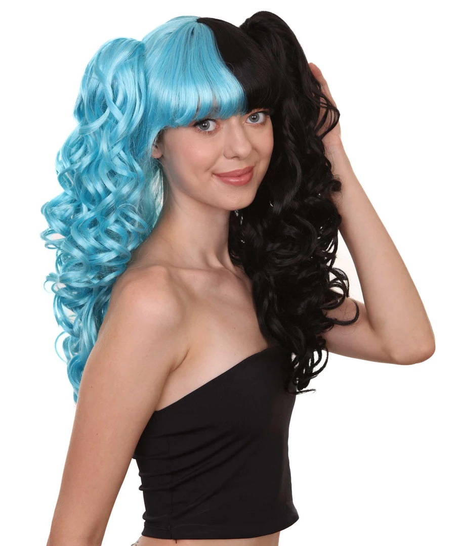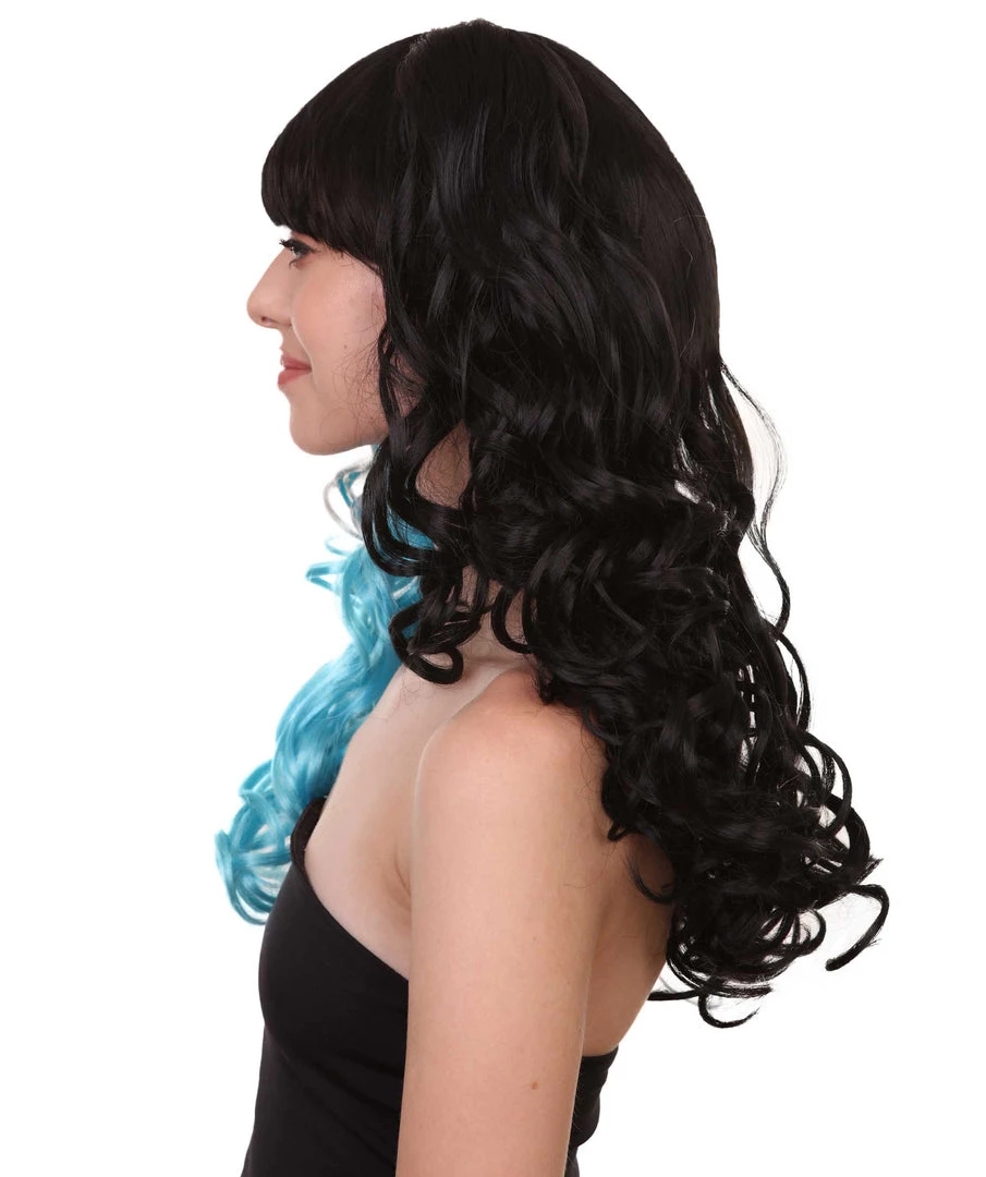 HPO Men’s Dolly Womens Wig | Blue And Black Wig | Premium Breathable Capless Cap