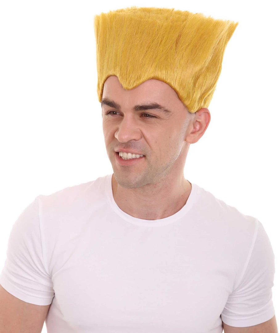 HPO Men’s Fighter Game | Mens Short Length Electric Yellow Straight Spiked Cosplay Wig
