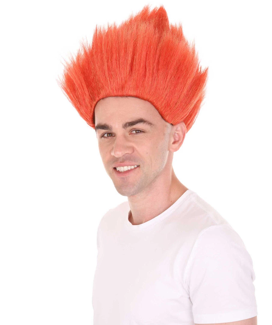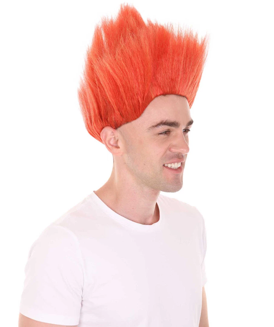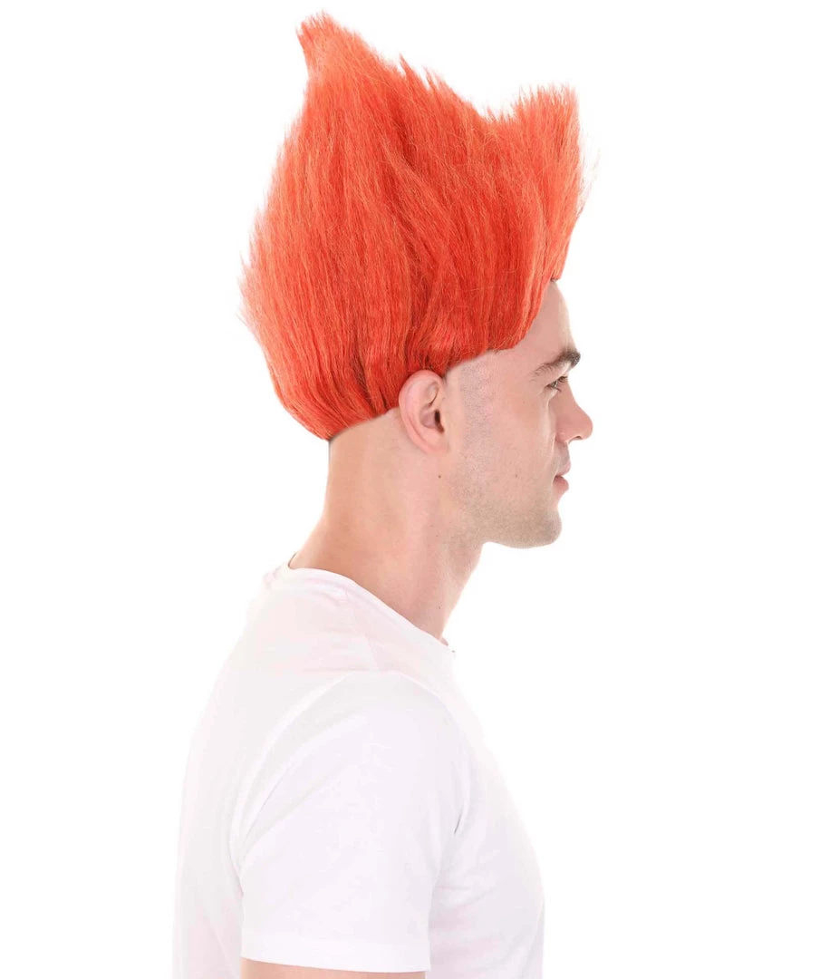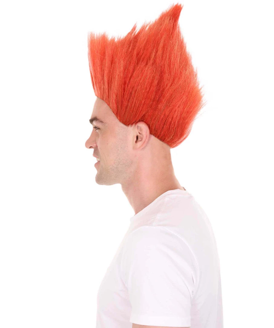 HPO Men’s Fire Movie Mens Wig | All Back Tall Red Wig | Premium Breathable Capless Cap