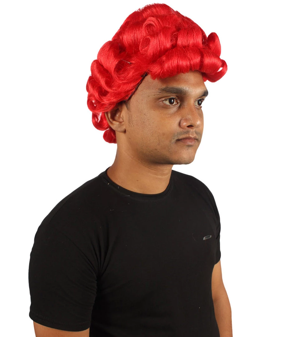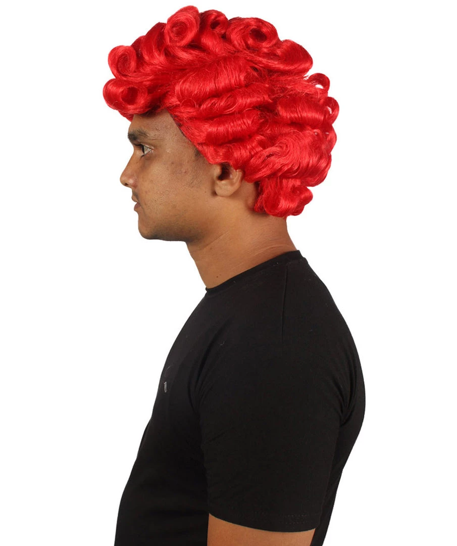 HPO Men’s Men Curly Rockstar Wig Red | Premium Breathable Capless Cap