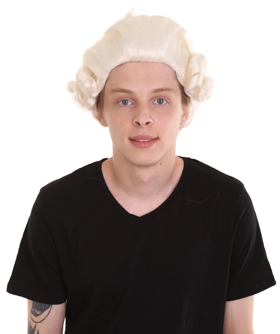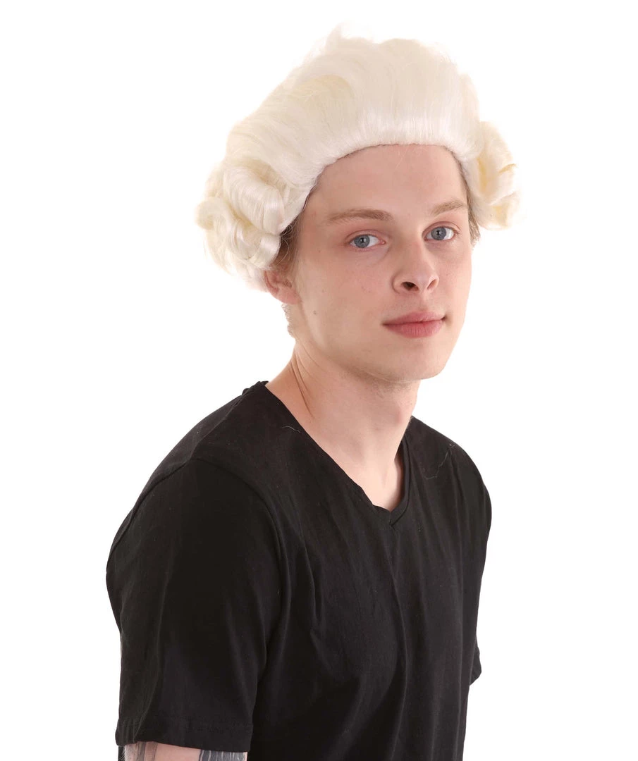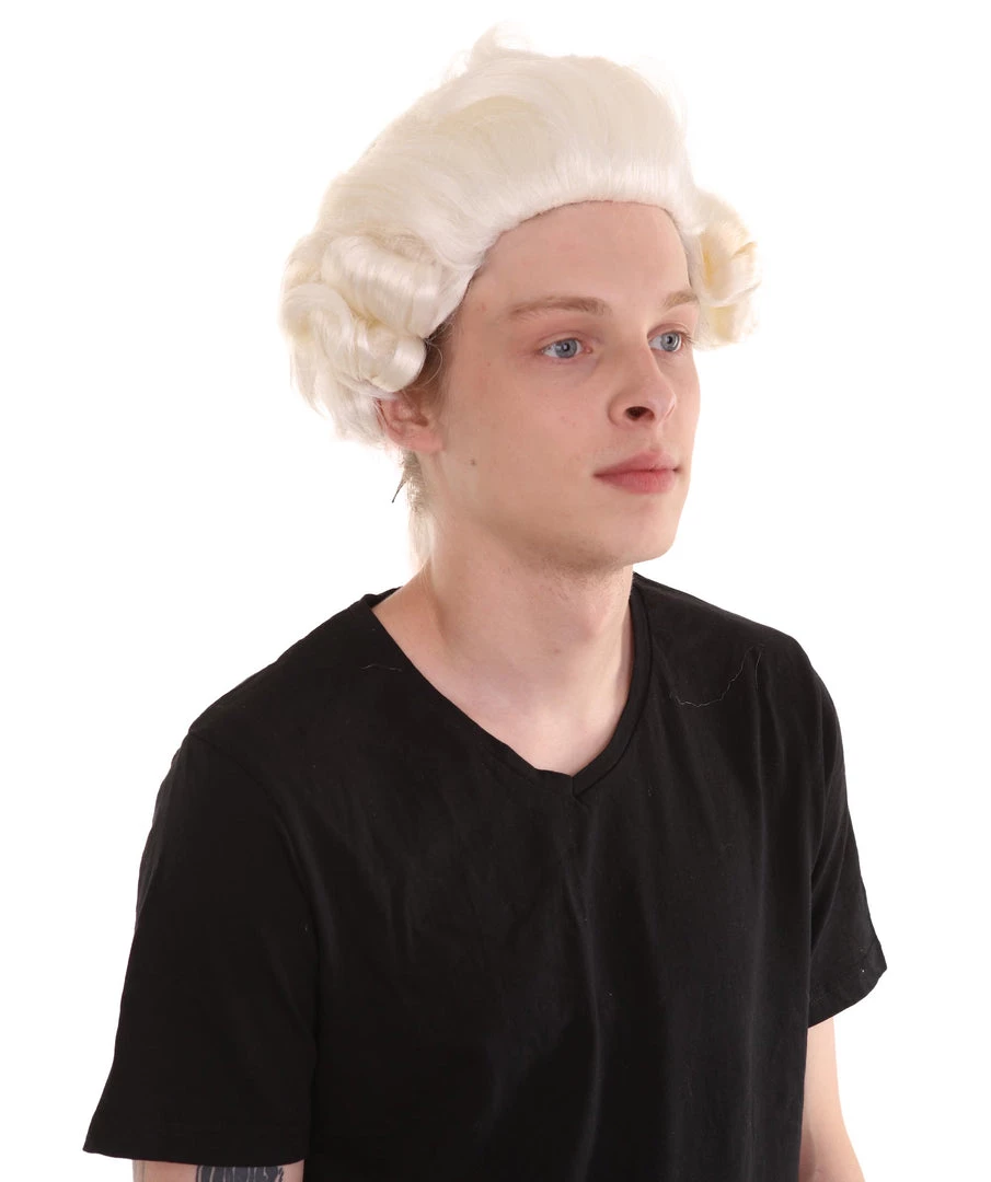 HPO Men’s Mens Colonial Historical Judge Light Blonde Wig | Premium Breathable Capless Cap