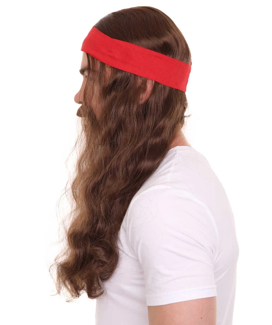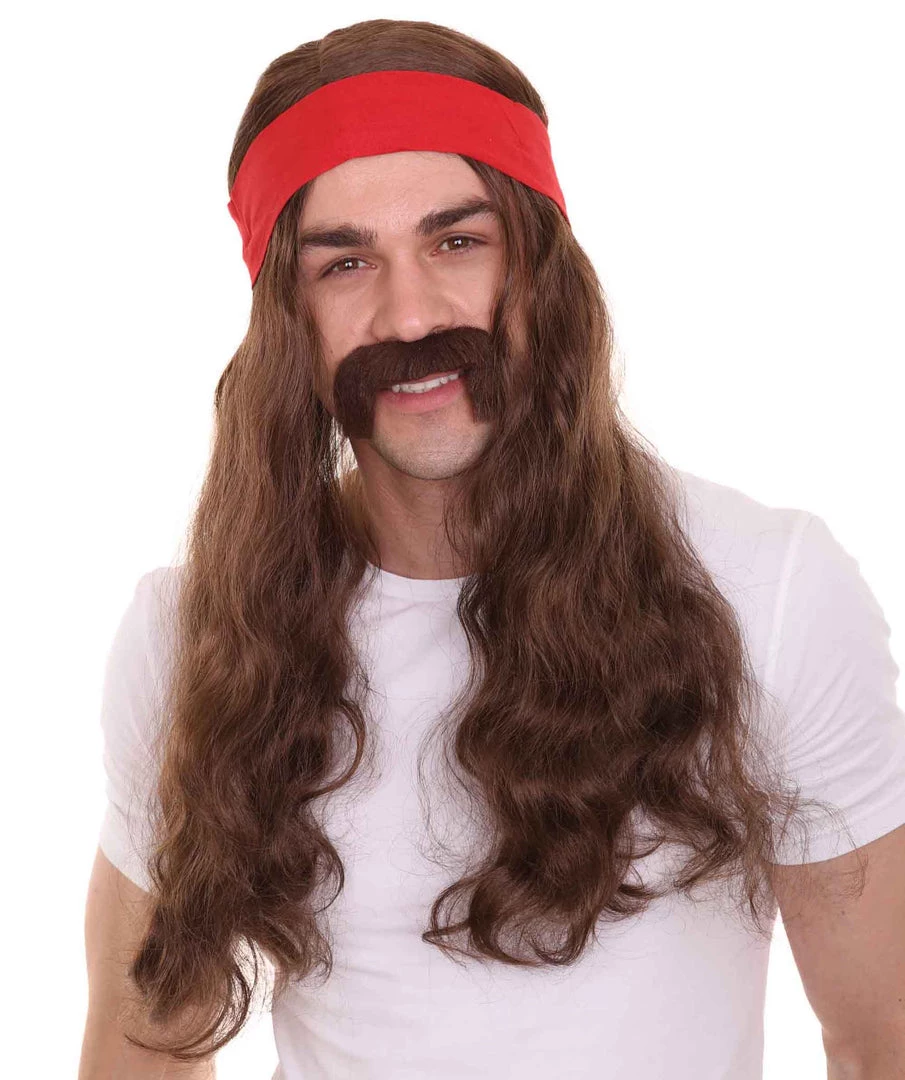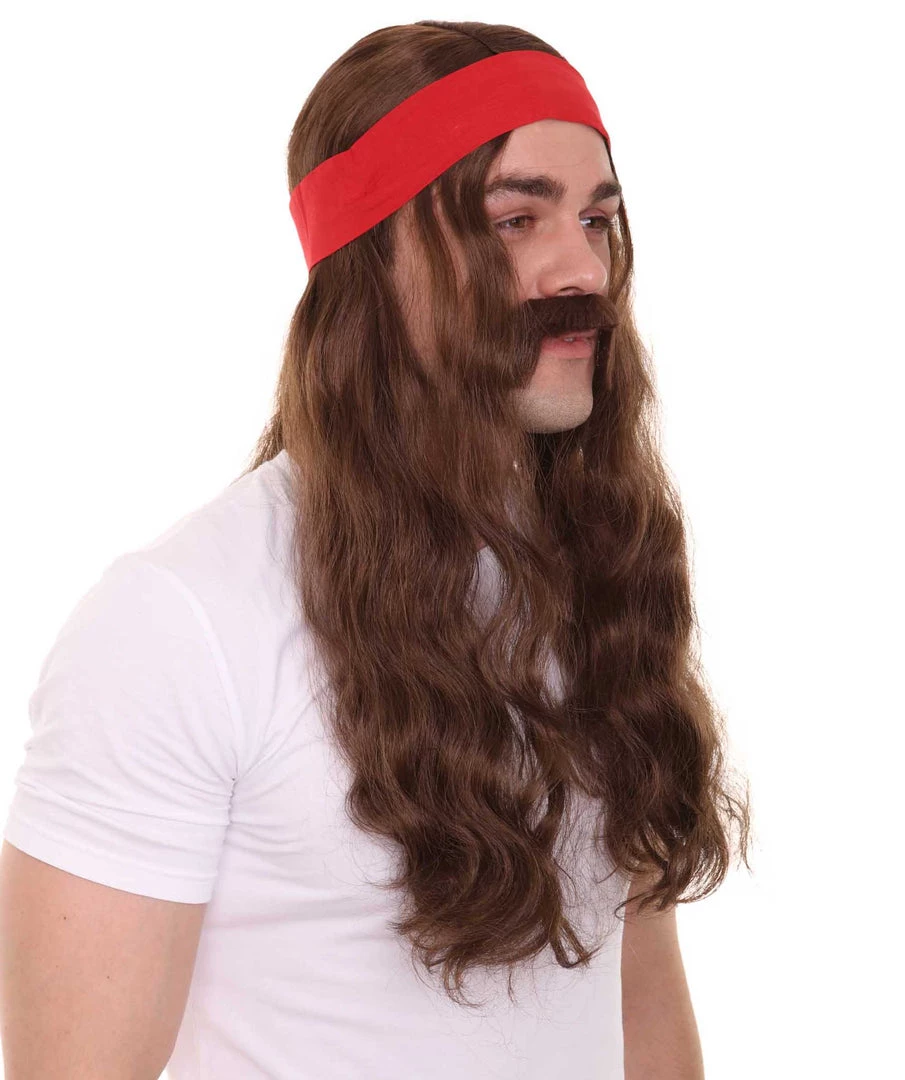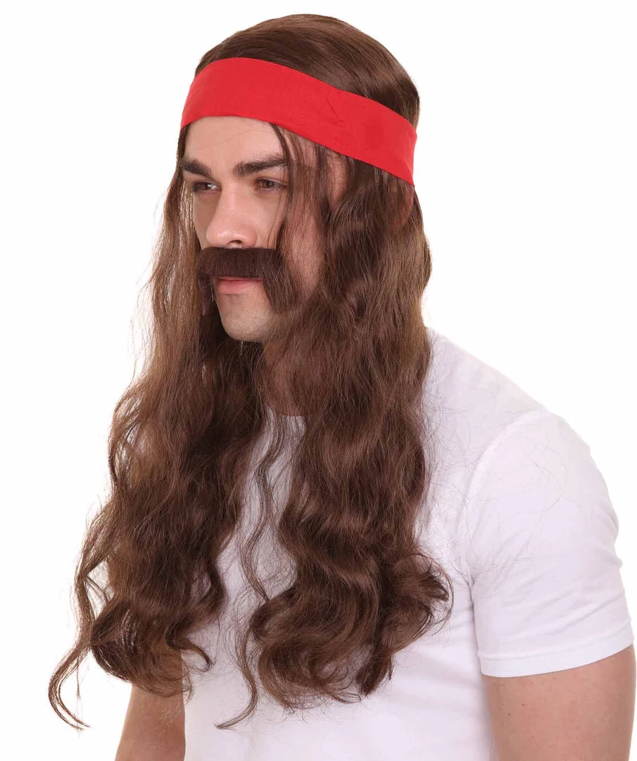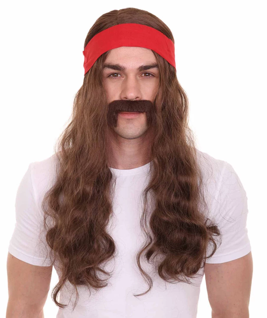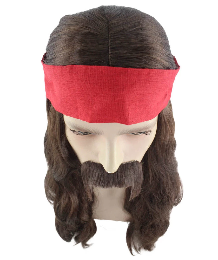 HPO Mens Pirate Wig And Moustache | Brown Long Wig | Premium Breathable Capless Cap Men’s
