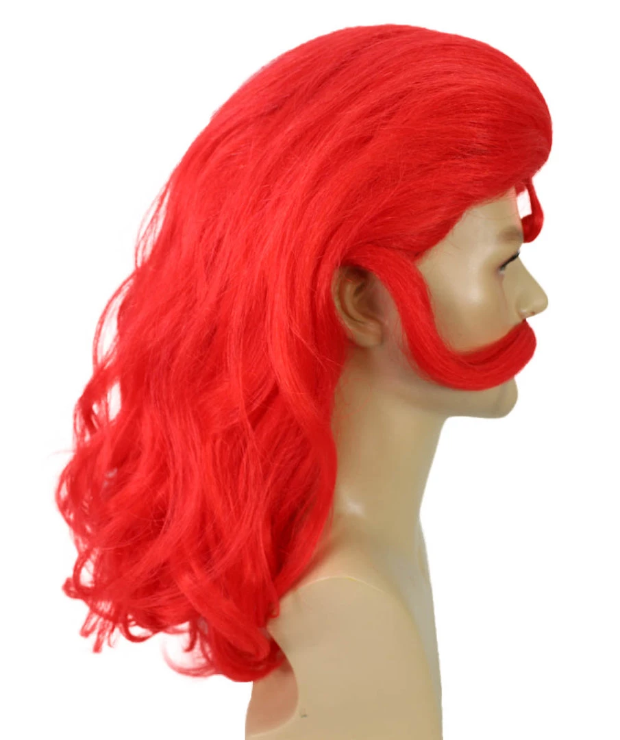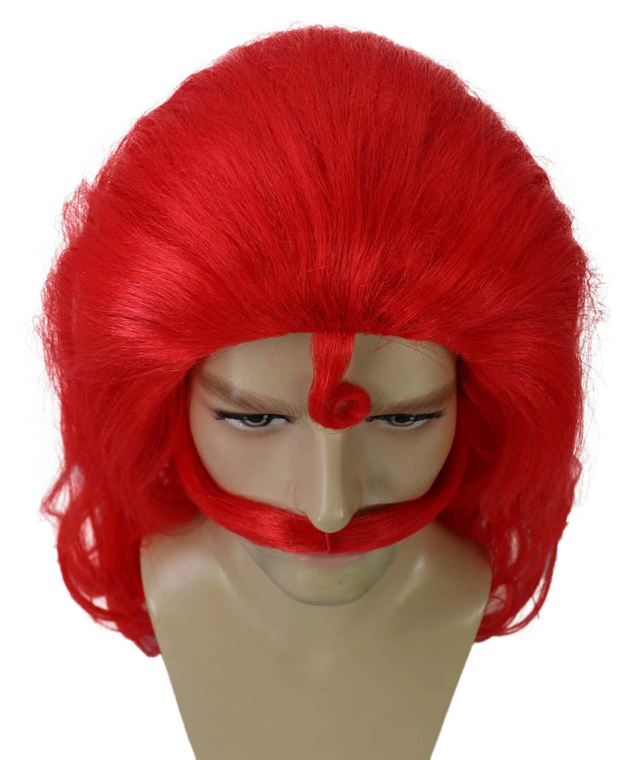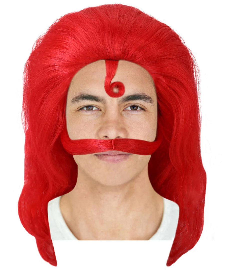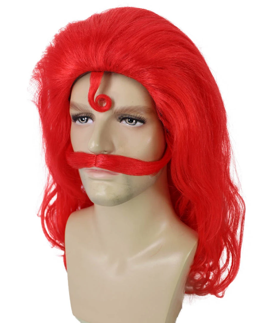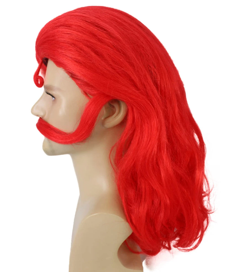 HPO Multicolor | Men’s Long Red Straight Handle Bar Mustache Smooth Wig | Premium Breathable Capless Cap