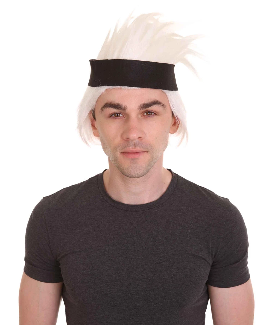 HPO Ninja Anime | Men’s Short Straight Spiked Grey Cosplay Wig With Headband | Premium Breathable Capless Cap