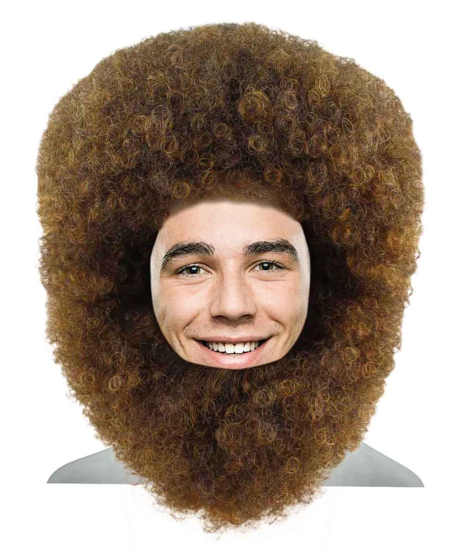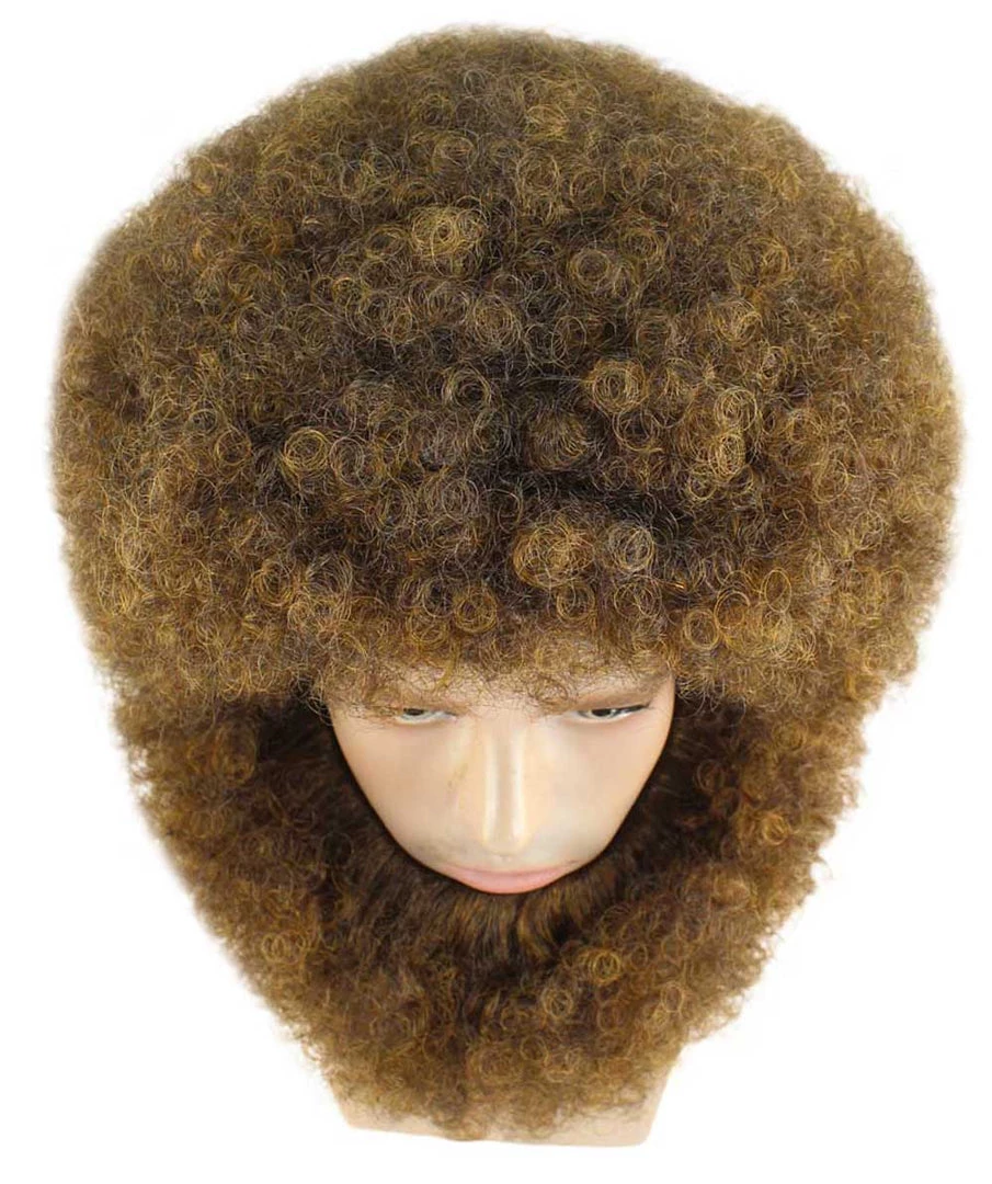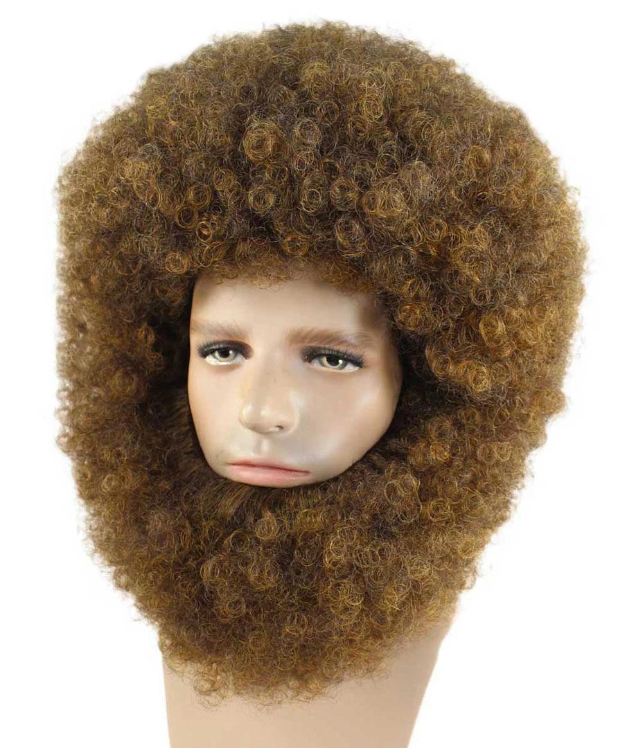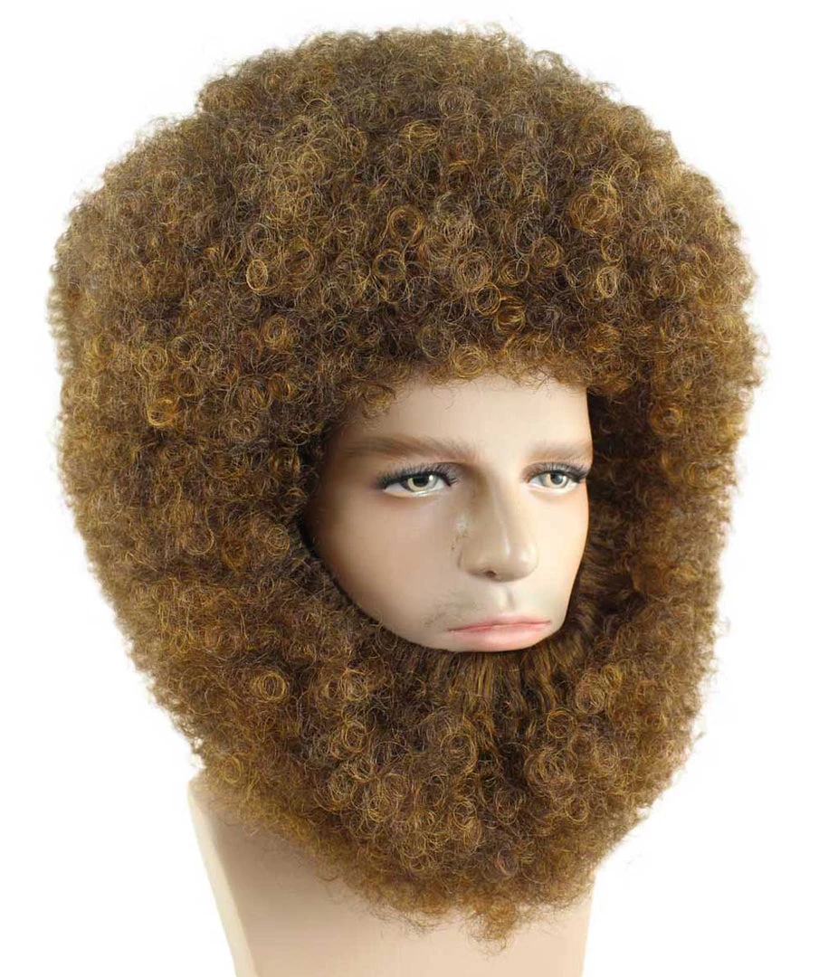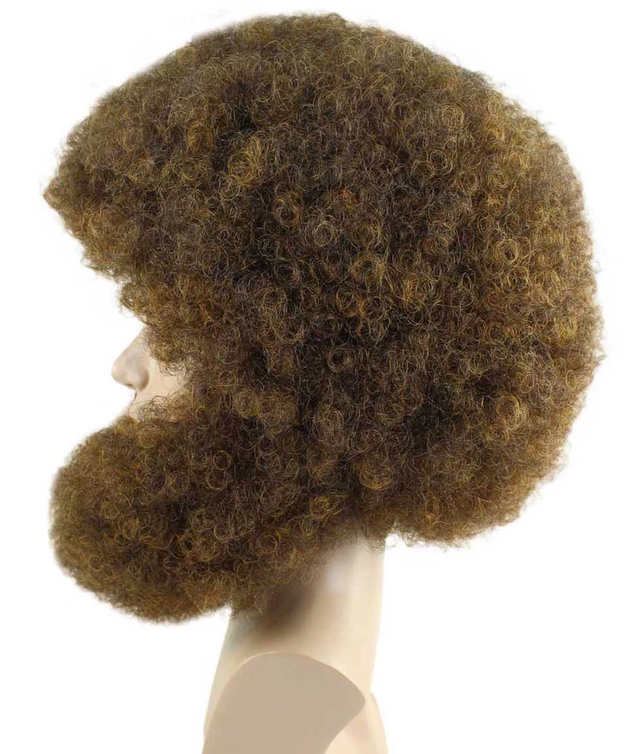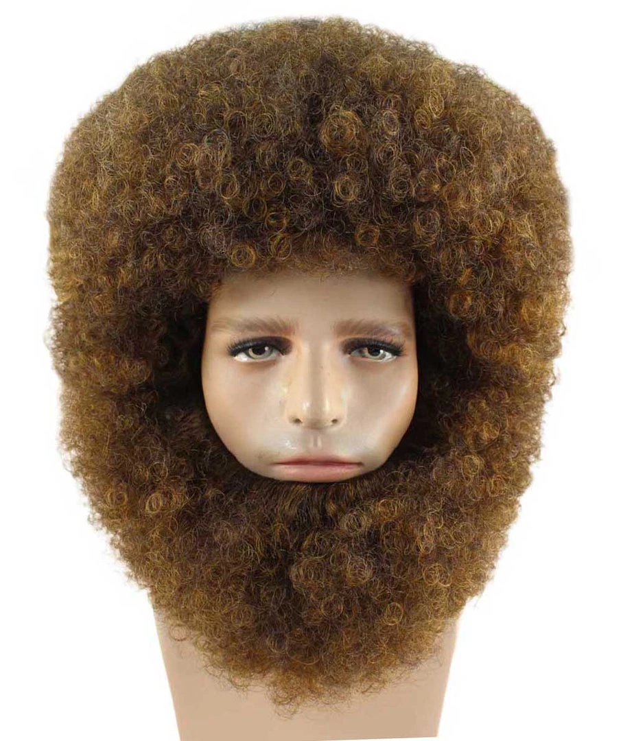 HPO Painter Afro Mens Wig With Full Beard Set | Cosplay Halloween Brown Color Wig | Premium Breathable Capless Cap