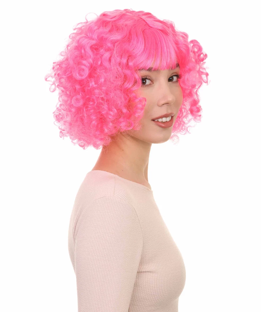 HPO Pink Curly Womens Wig | Party Ready Fancy Cosplay Halloween Wig | Premium Breathable Capless Cap Women’s