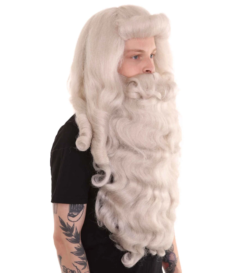 HPO Professional Mens Santa Wig And Full Beard Set | Grey Holiday Wigs | Premium Breathable Capless Cap Men’s