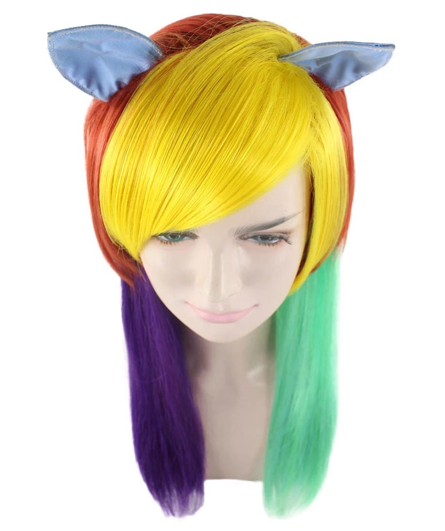 HPO Rainbow Unicorn Womens Wig | Colorful Party Ready Fancy Cosplay Halloween Wig | Premium Breathable Capless Cap Women’s