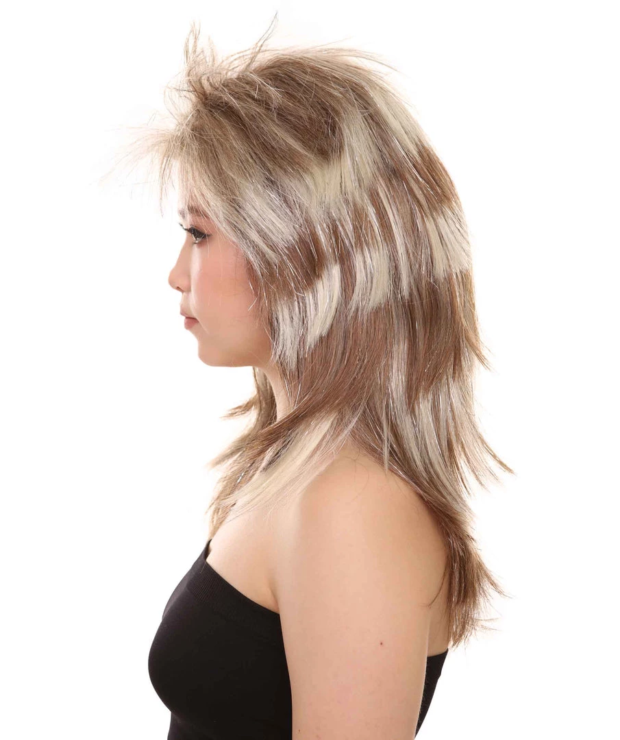 HPO Rockin Diva Tinsel Stripe Women’s Wig | Blonde Mullet TV/Movie Wig | Premium Breathable Capless Cap