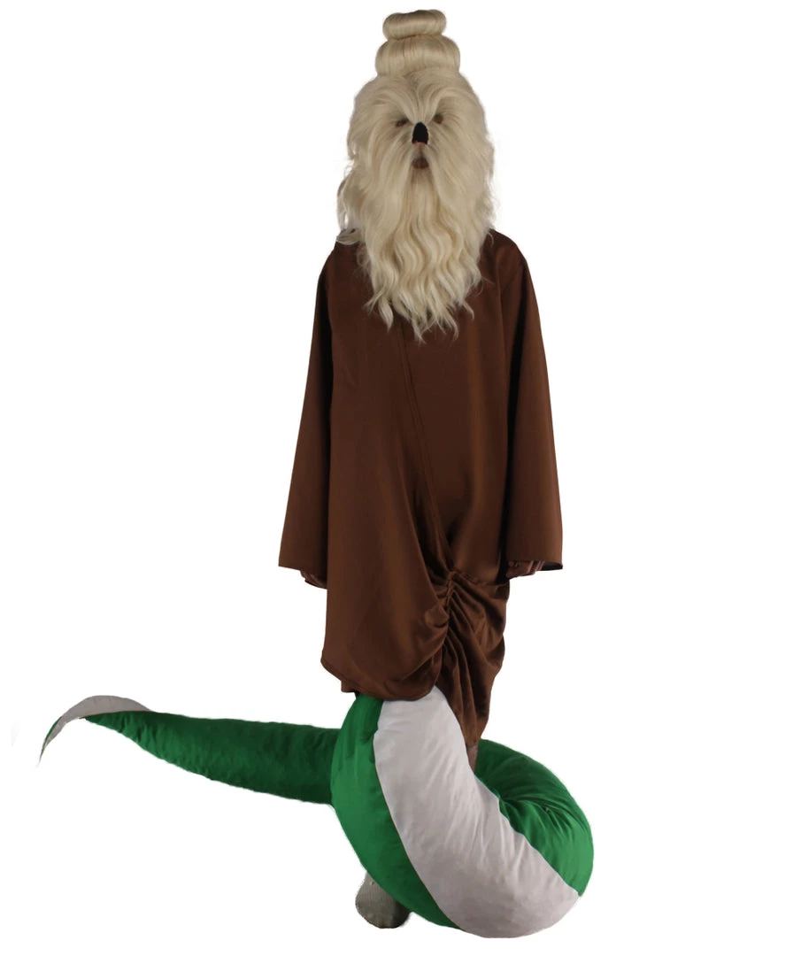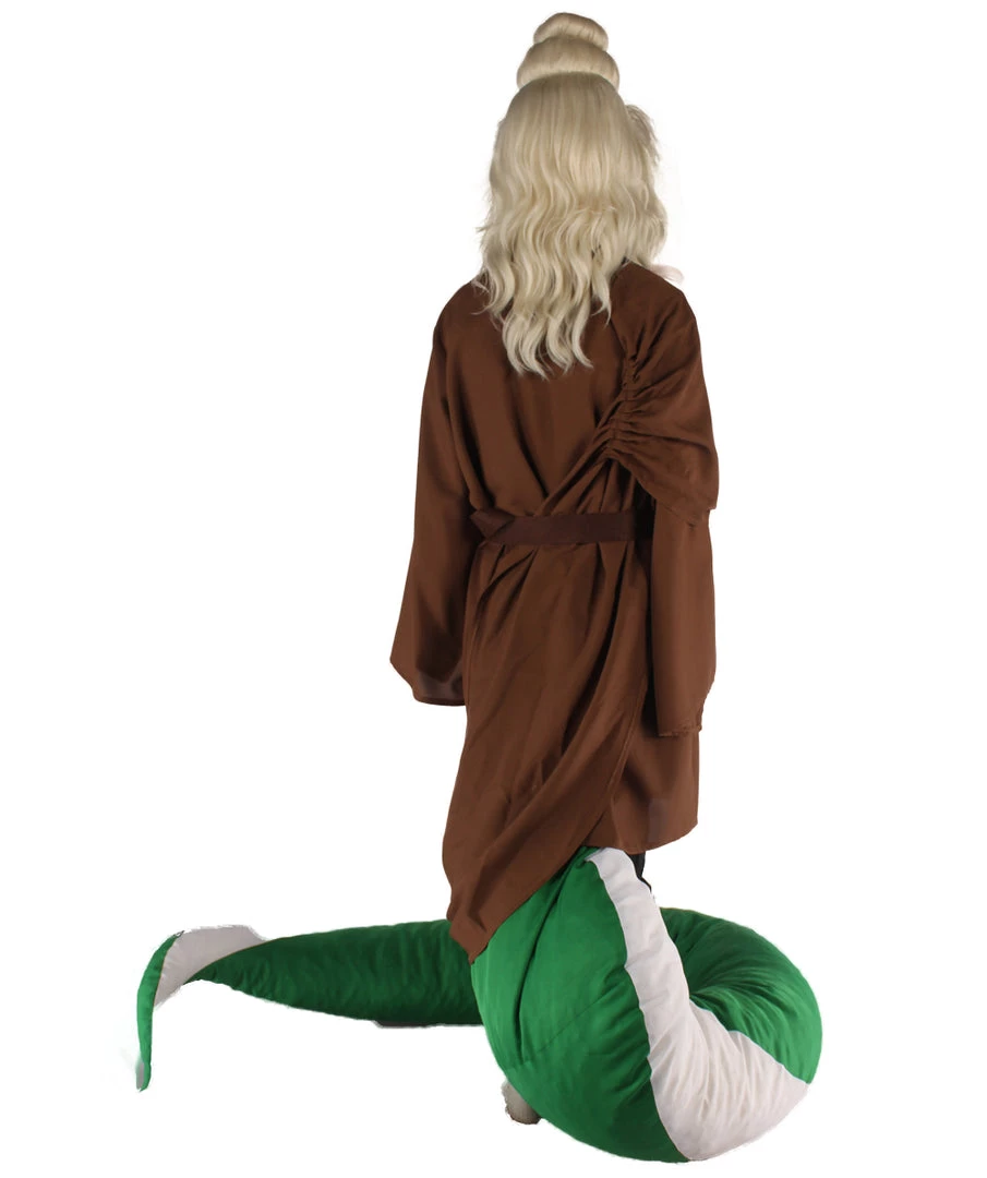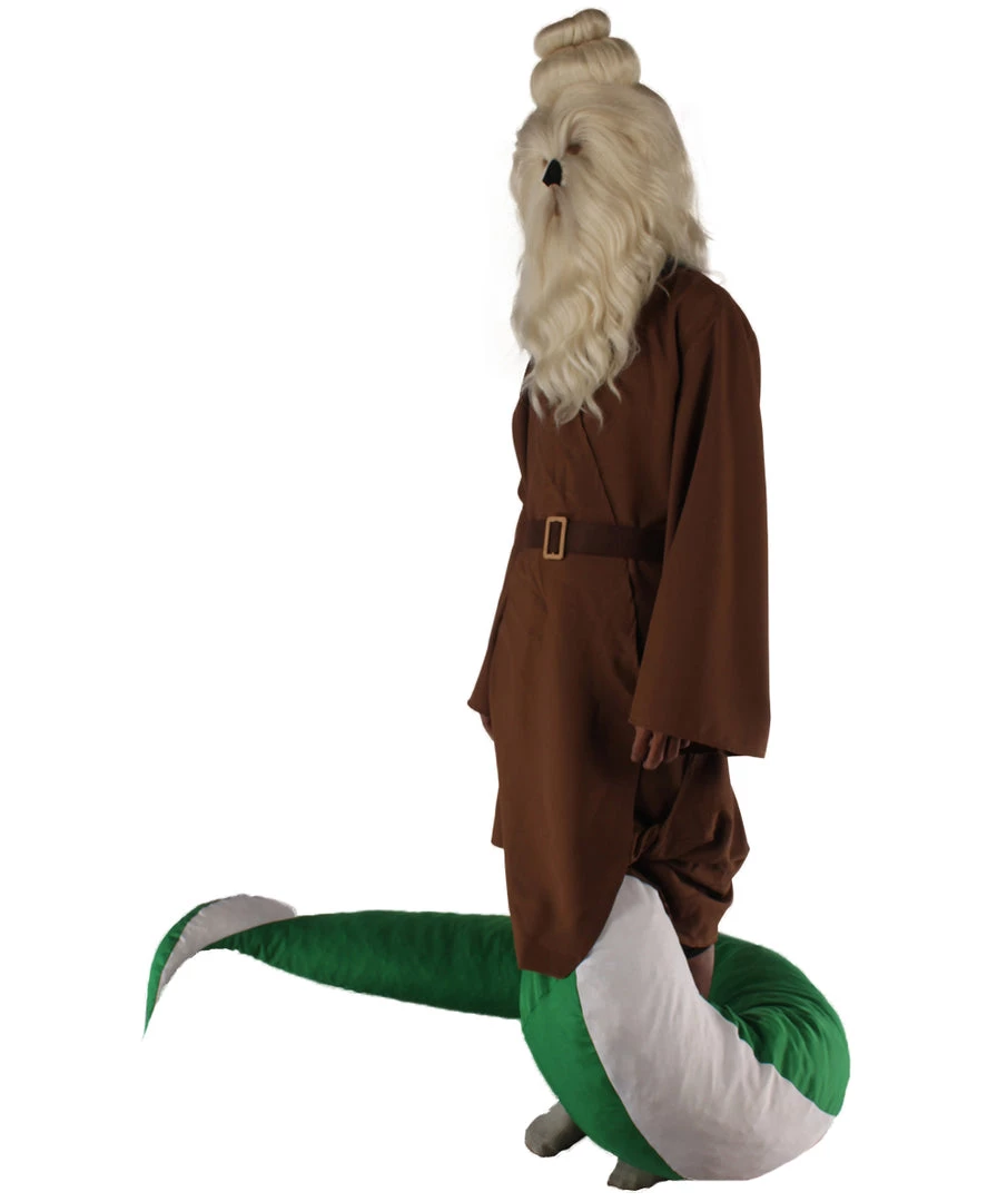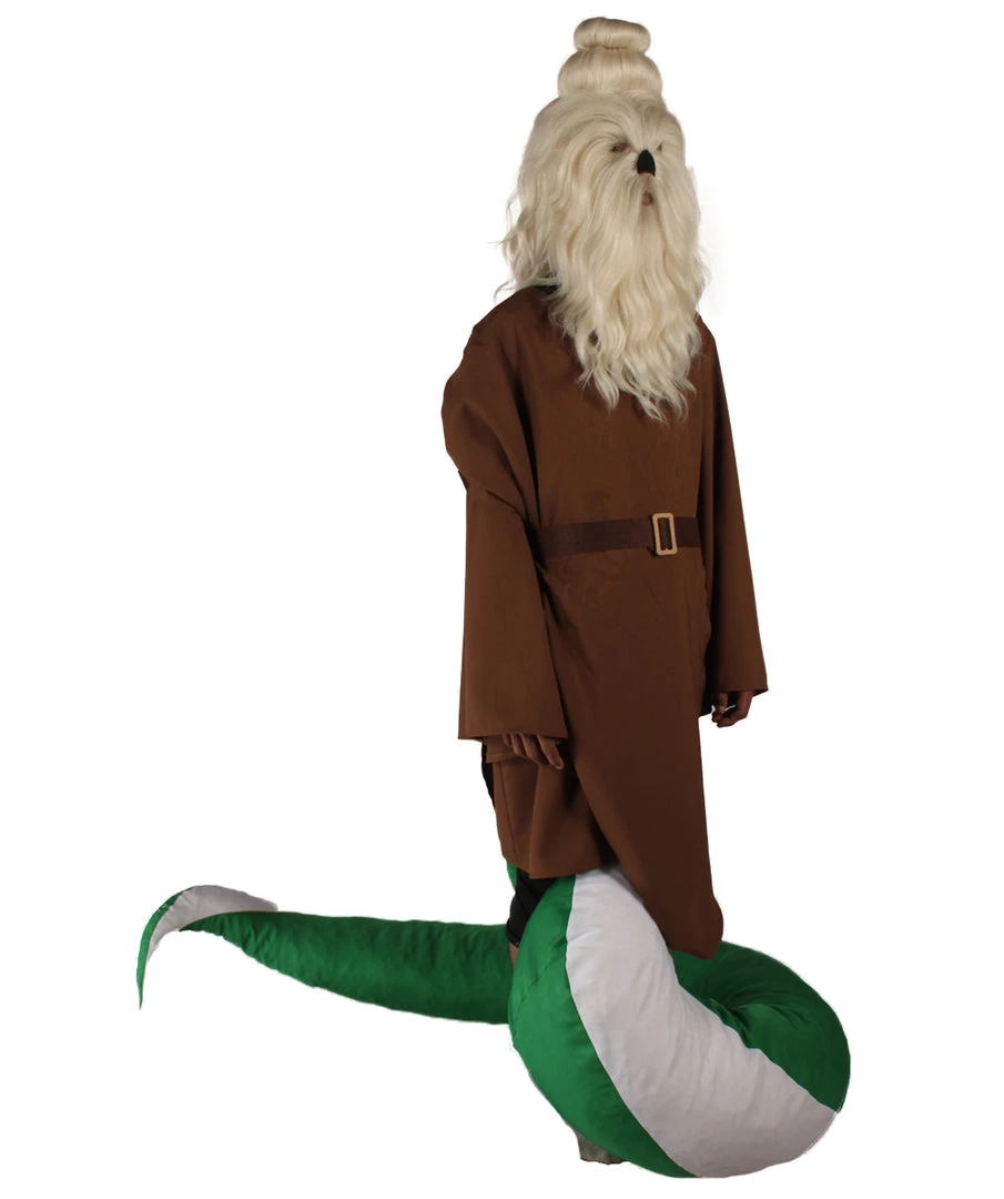 | From on top of the mythical mountains lives a wise monk that has transformed himself into a serpant for fast and stealthy manuevers to slide by intruders. Each costume includes a monk robe with a stitched serpant bottom that is white and green perfect for Cosplay and Halloween events. Also included is one of our furry masks. |