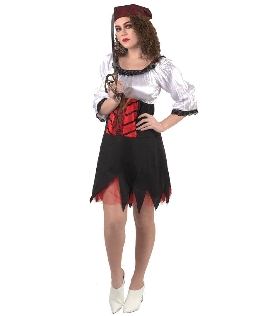 Plunder treasures and hearts in this sexy pirate look with lacy detailing. Ideal for Comicon, Halloween, and performances. .