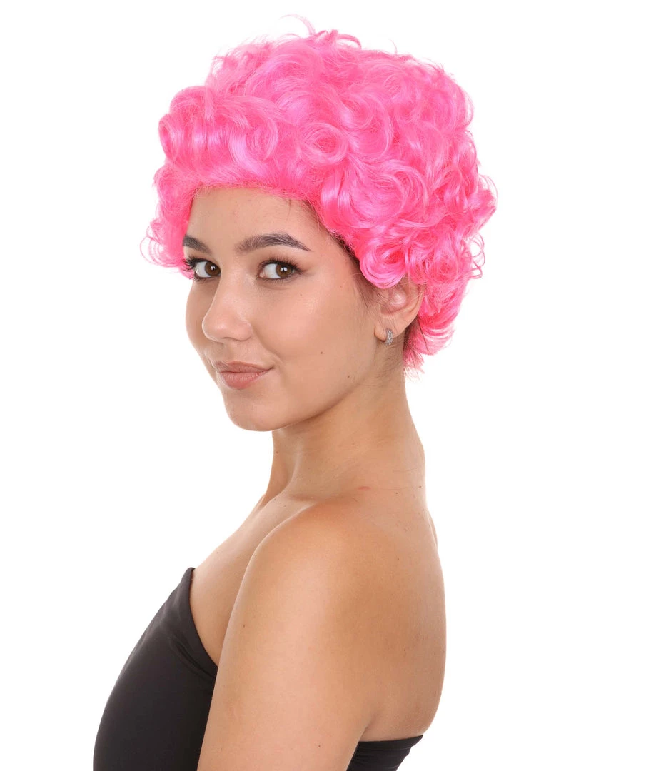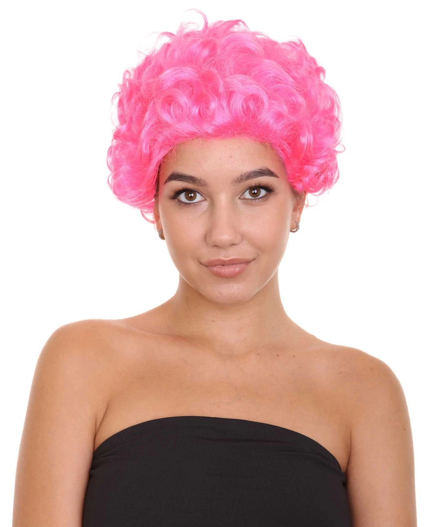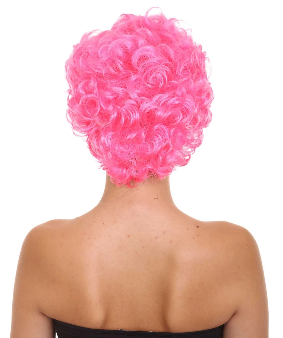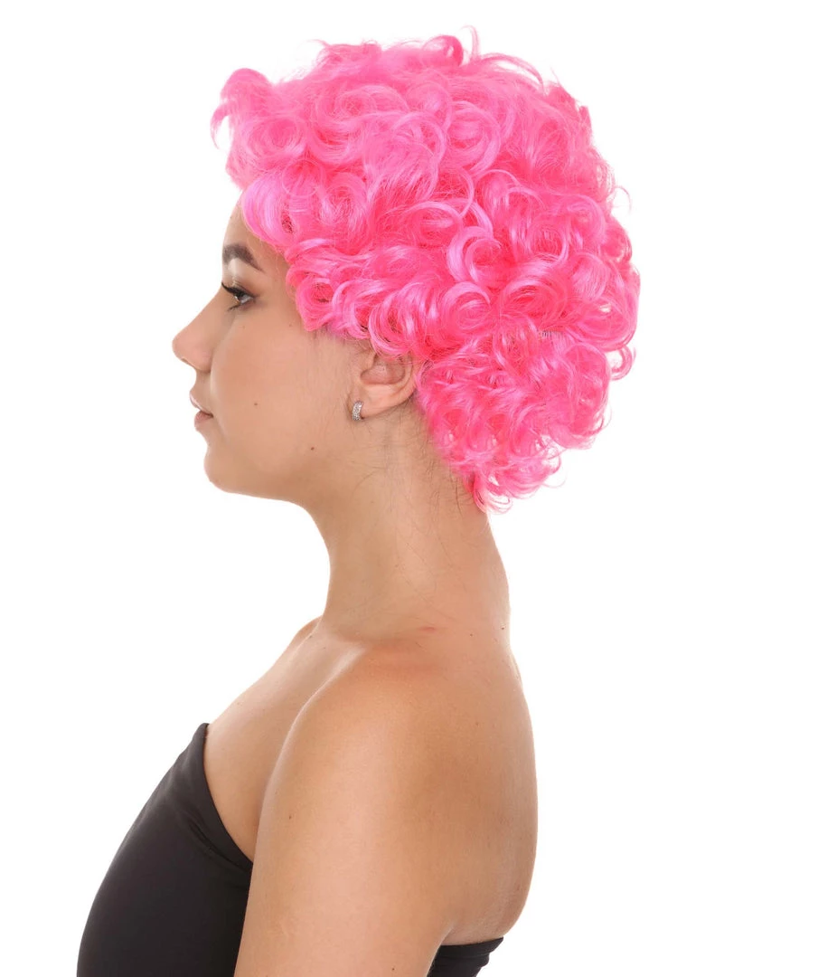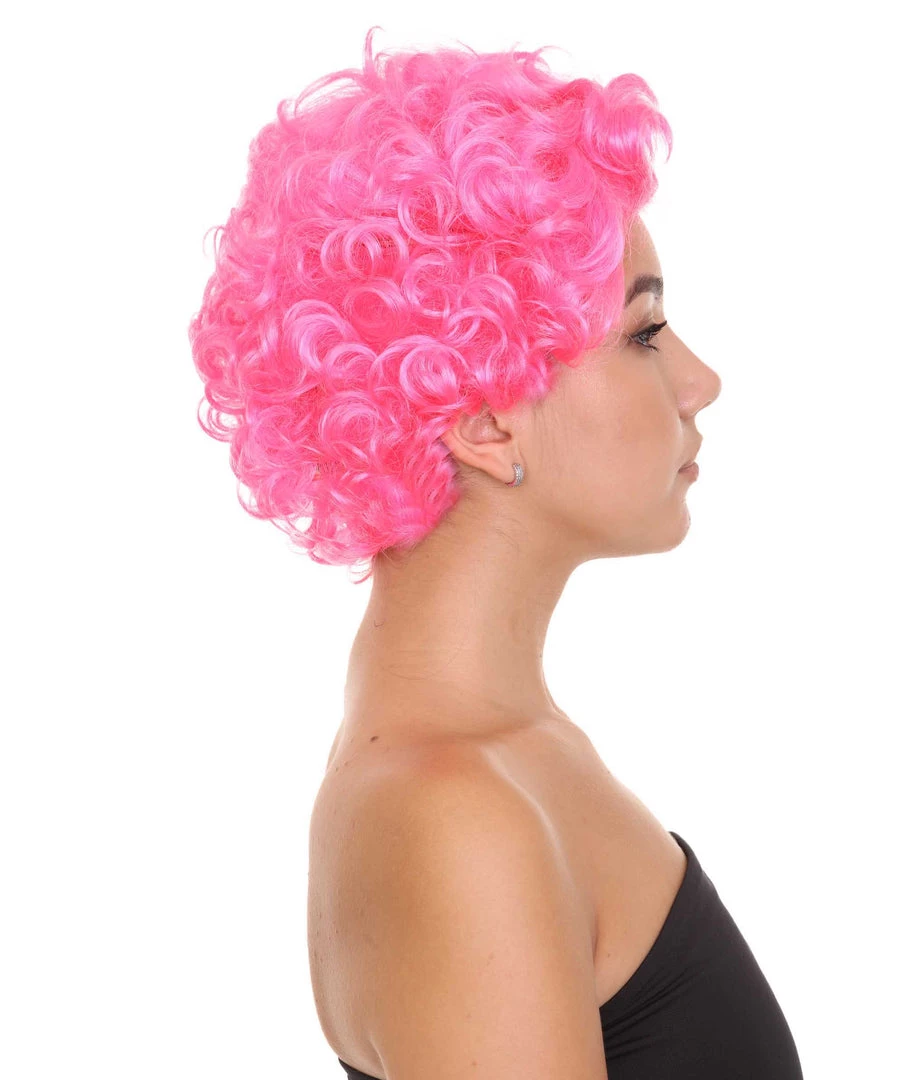 HPO Short Curly Pink Womens Wig | All Back Party Ready Fancy Cosplay Halloween Wig | Premium Breathable Capless Cap Men’s