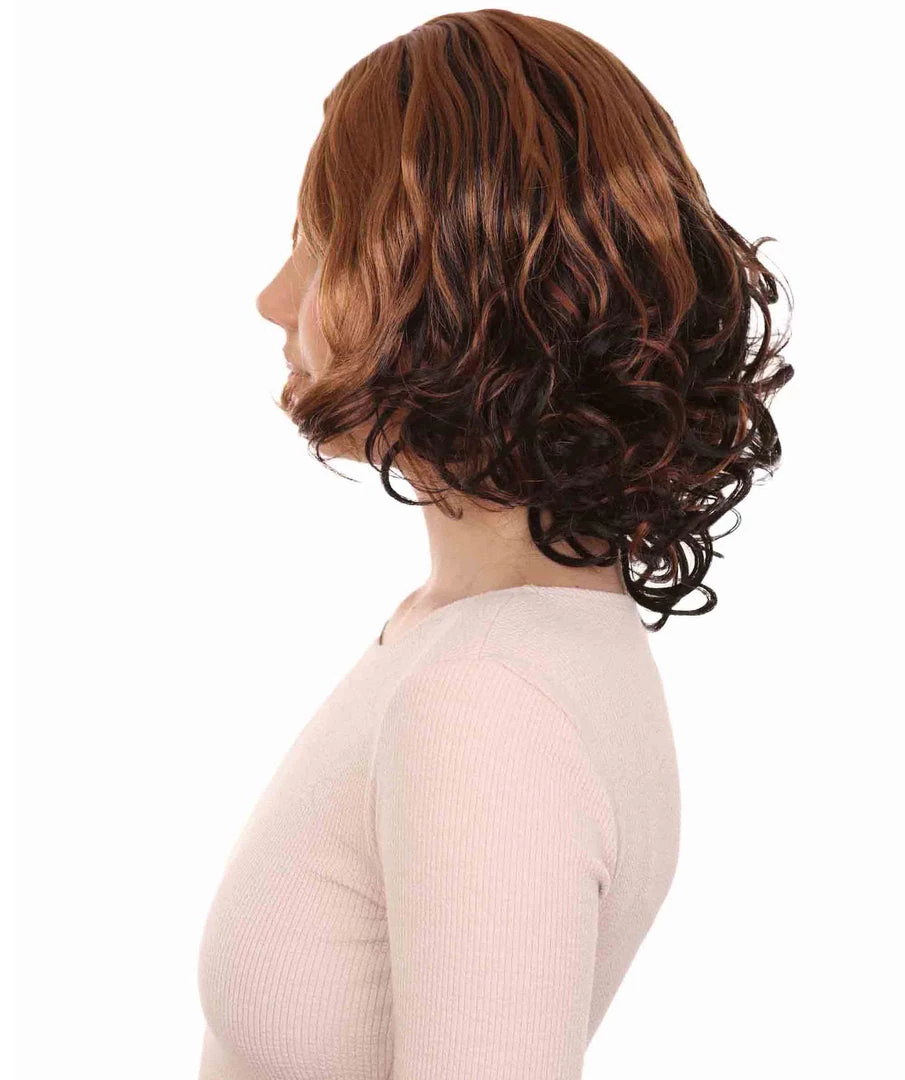 HPO Short Curly Wave Brown Womens Wig | Natural Looking Wig | Premium Breathable Capless Cap Women’s