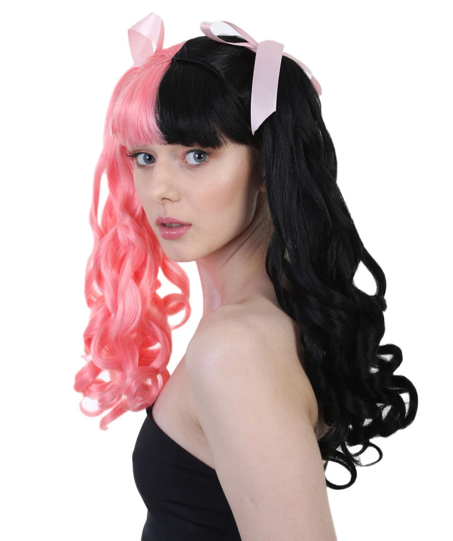 This wig mimics a star who rose to fame in 2012 after appearing on a singing show. Known for her creepy and cool lyrics that often paint uncomfortable stories, her unique style has inspired many. Not only does she have fun with fashion, she also has a different hairstyle or color to match almost every outfit. Now we do too! Whichever is your favorite look from a video or stage appearance, we have it! Choose the one that works best for you.