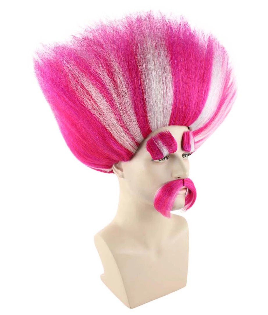 HPO Trol King Wig | Striped Square Pink Wig | Premium Halloween Wig SALE