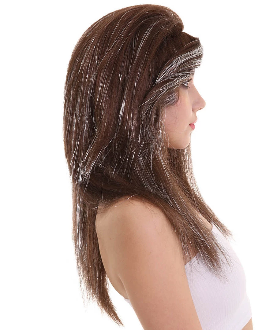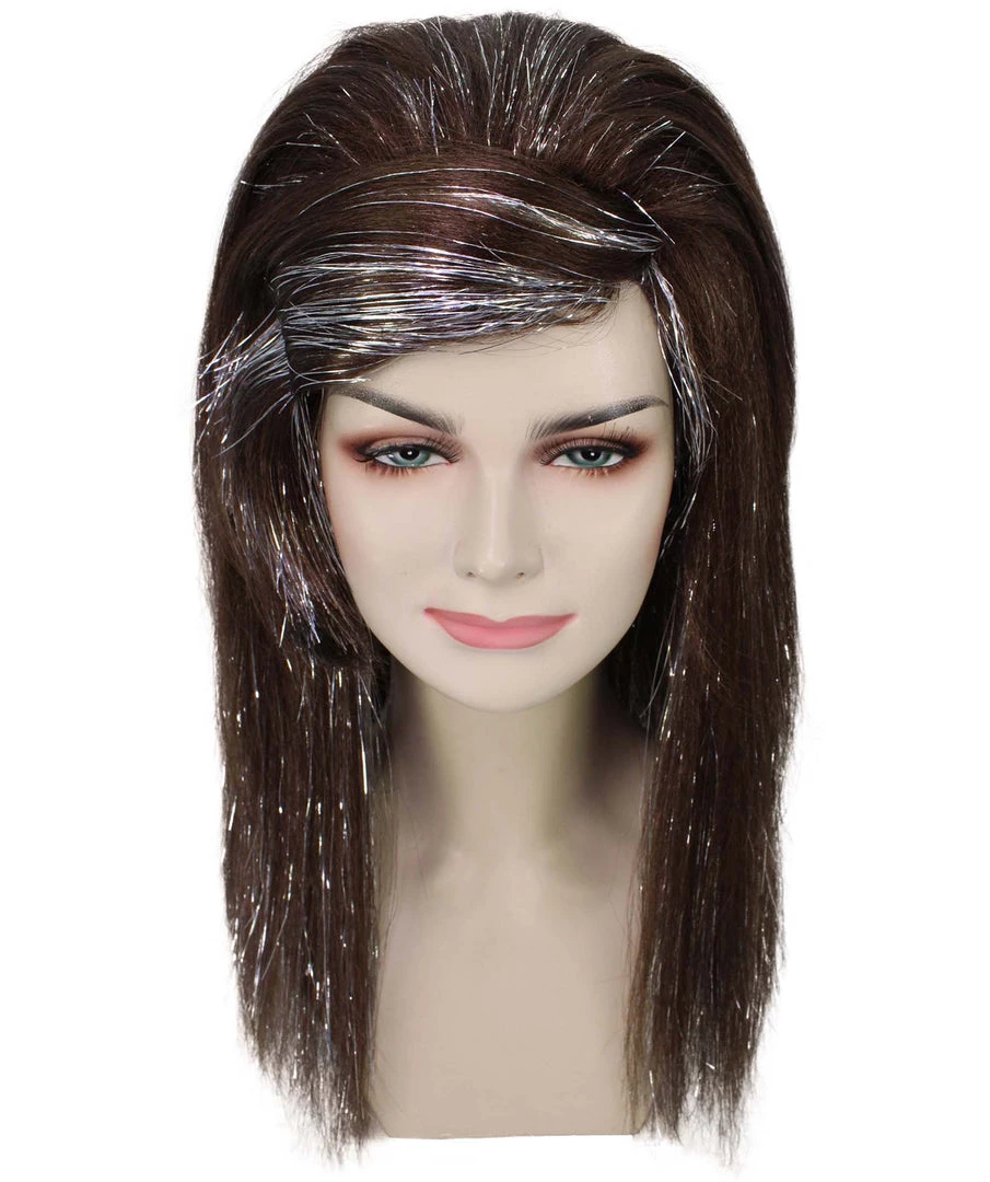 Be the first to review “HPO Women’s 60’s Brunette Bouffant With Silver Tinsel Highlights | Halloween Rave Wig | Premium Breathable Capless Cap” Cancel reply