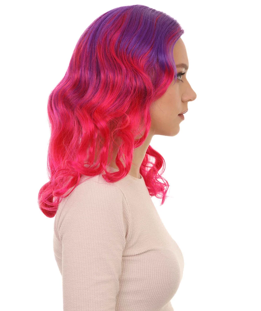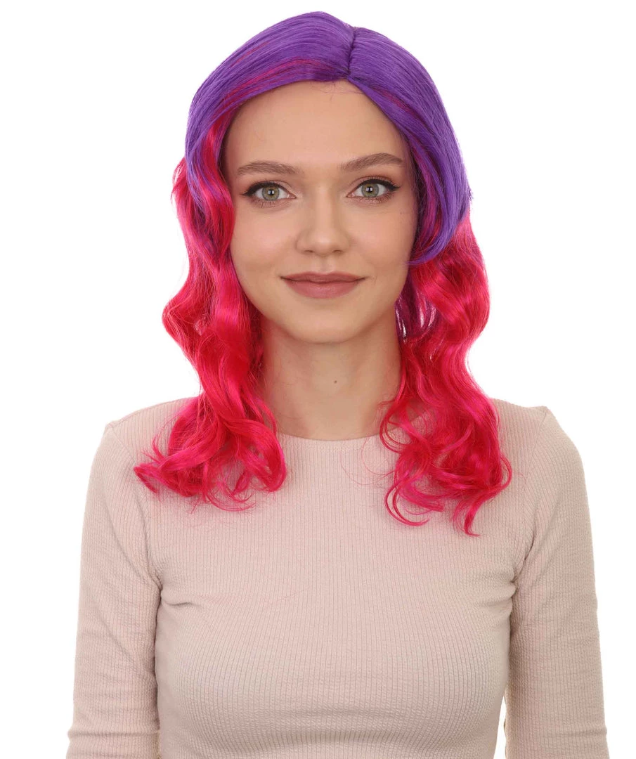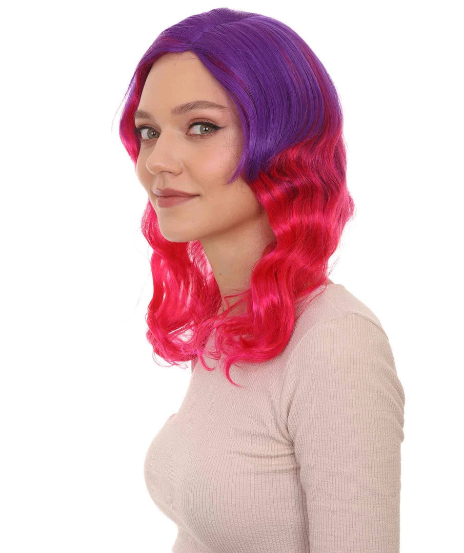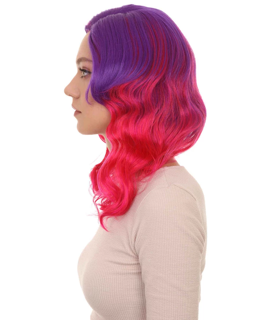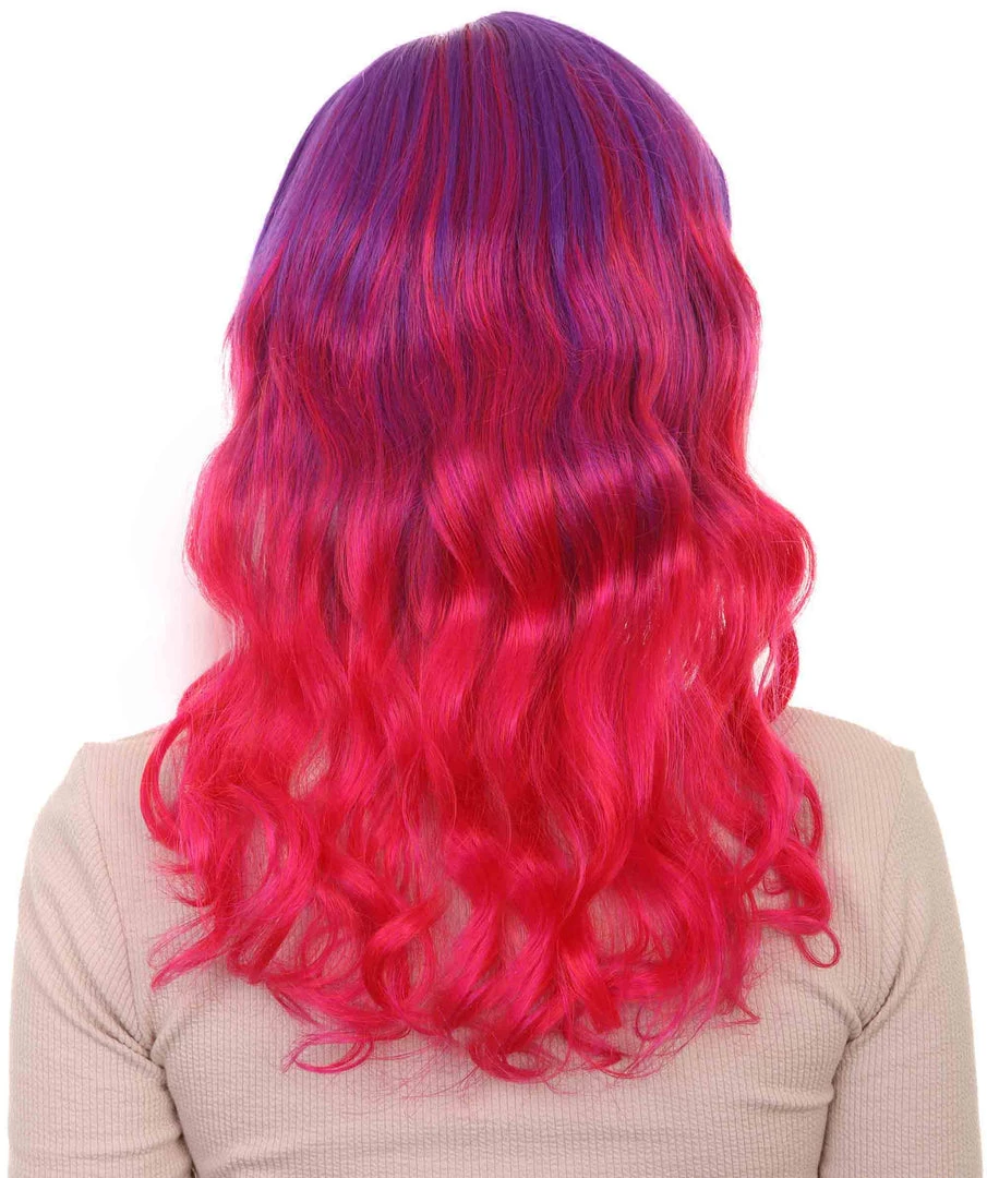 HPO Women’s Long Wavy Two-tone Wig | Purple & Pink Colorful Wigs | Premium Breathable Capless Cap