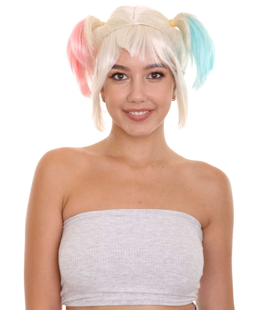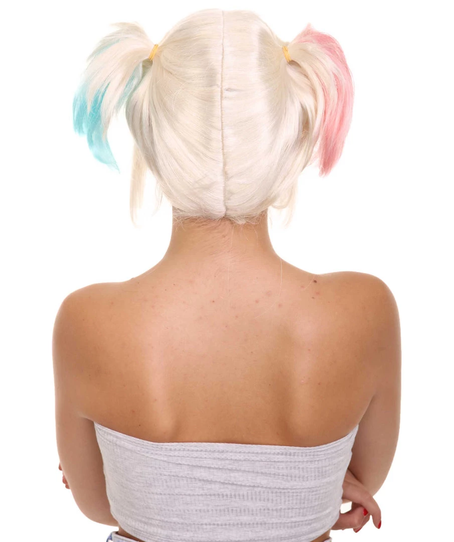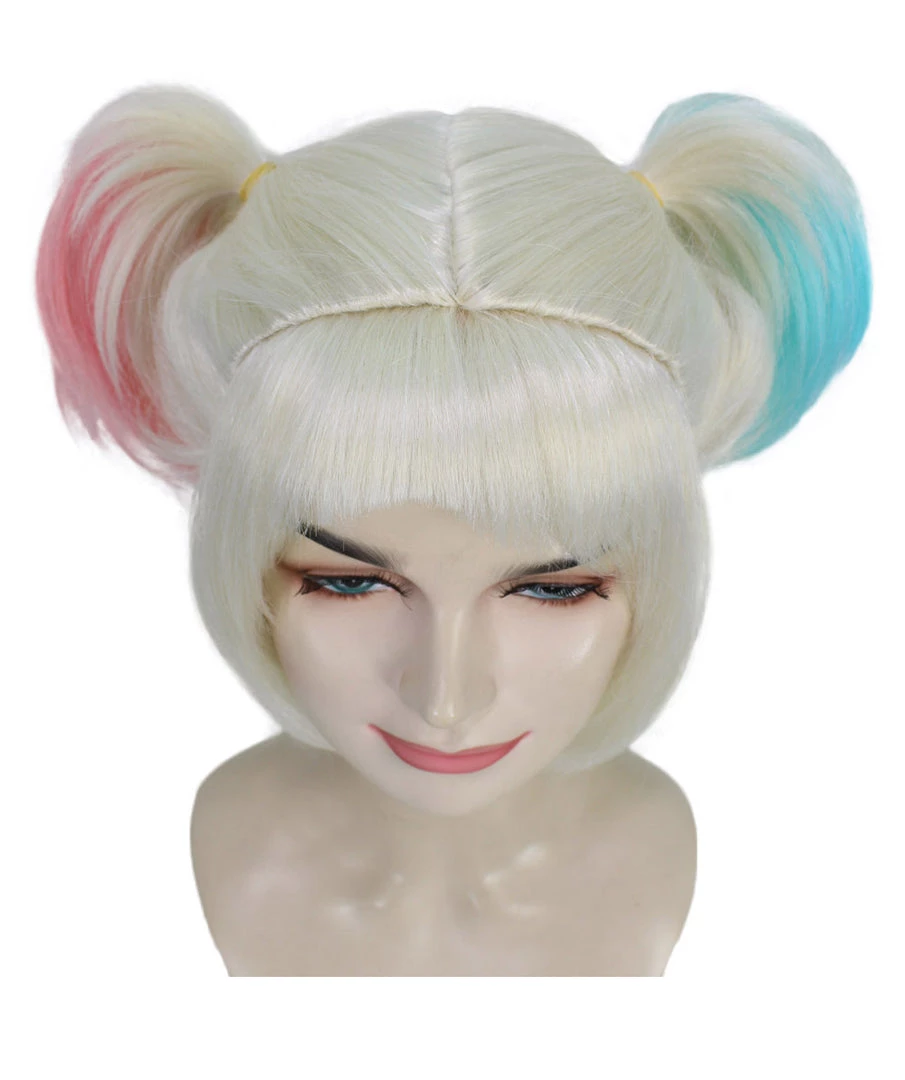 | Sometimes there is always a wild side to an innocent face and a psychotic manner to every crazy plan. After being left by her psychotic joker she seeks revenge on him and goes after the city. This wig is perfect for any Halloween or Cosplay event. Inspired by jokers ex girlfriend a well known pop culture icon and supervillian character, Our wig features breathable cap-less cap design that is engineered for easy comfortable ventilation and an adjustable experience for up to 24”. Appropriate for all ages and could easily be washed with cold water or olive oil based spray. |