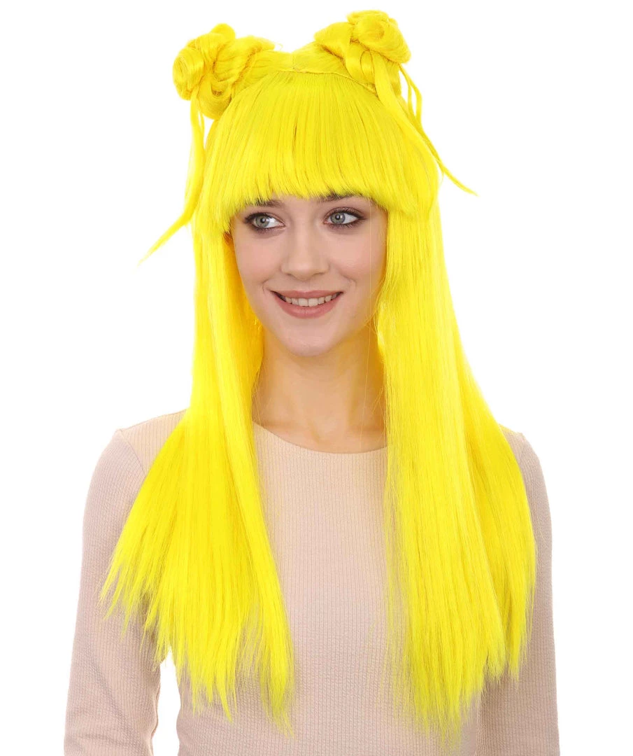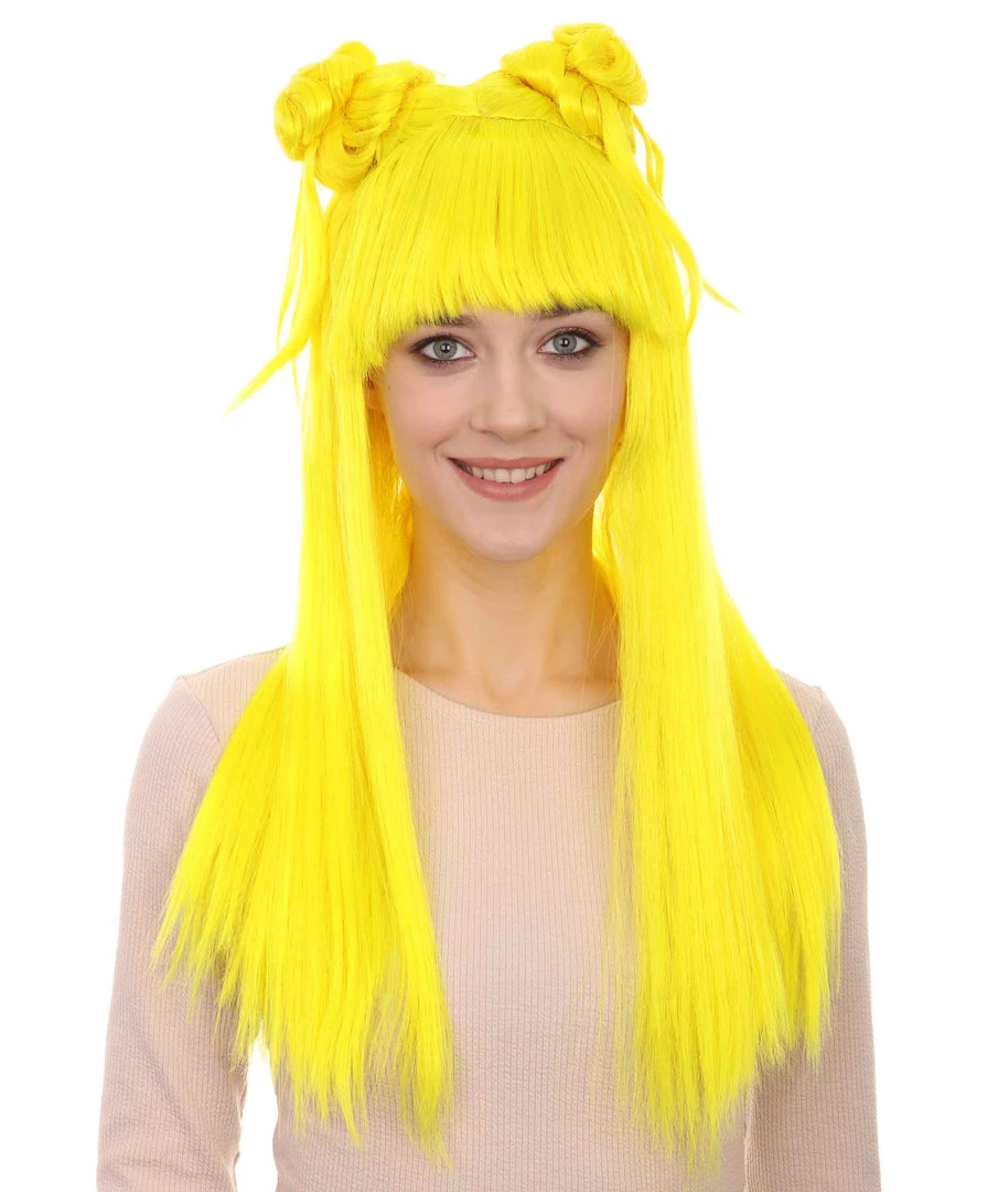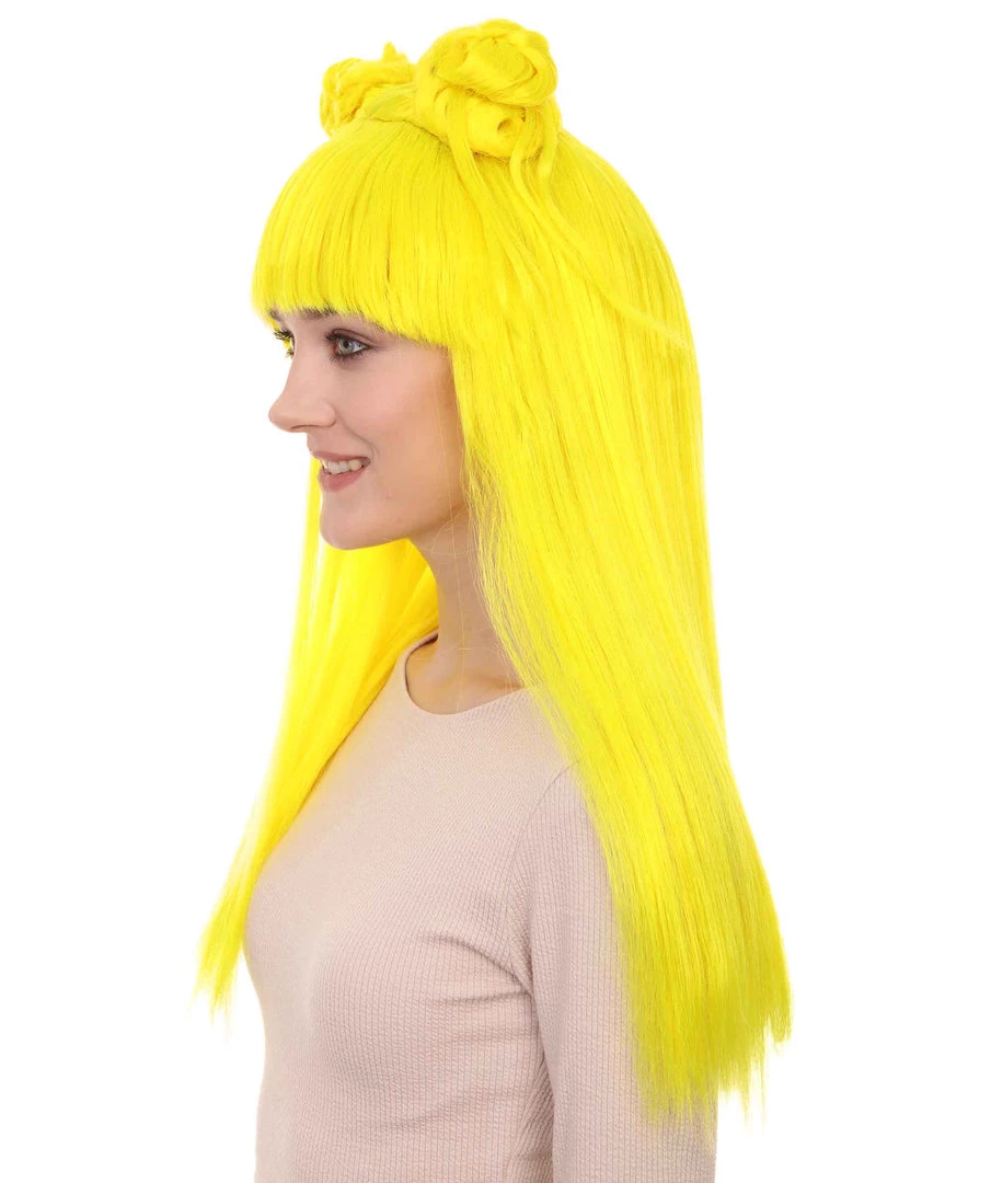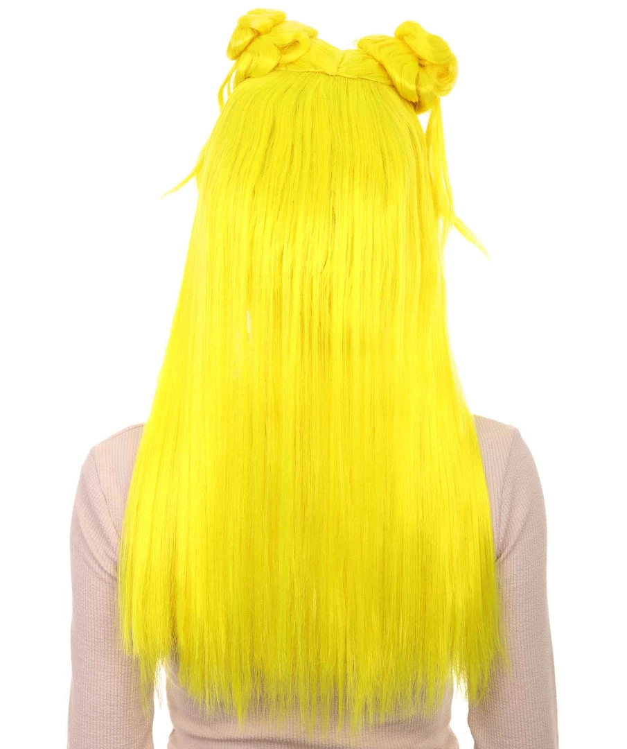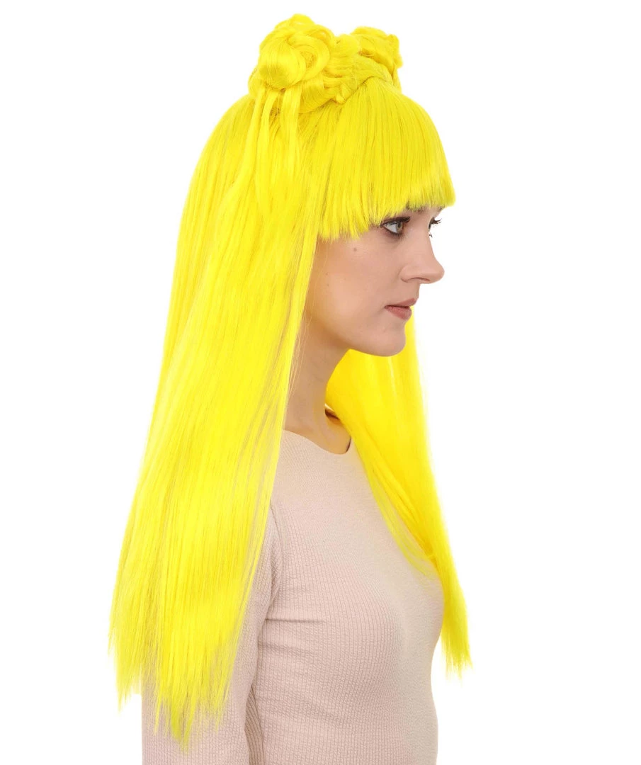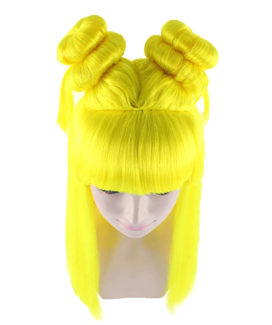 HPO Women’s Neon Yellow Asian Princess Two Tied Horn Wig | Premium Breathable Capless Cap