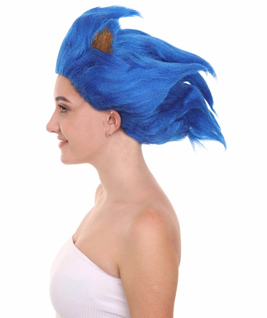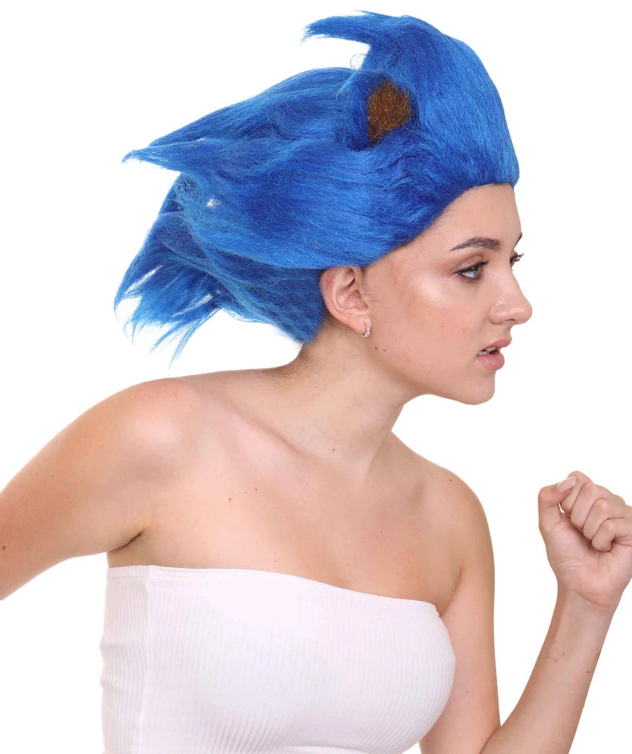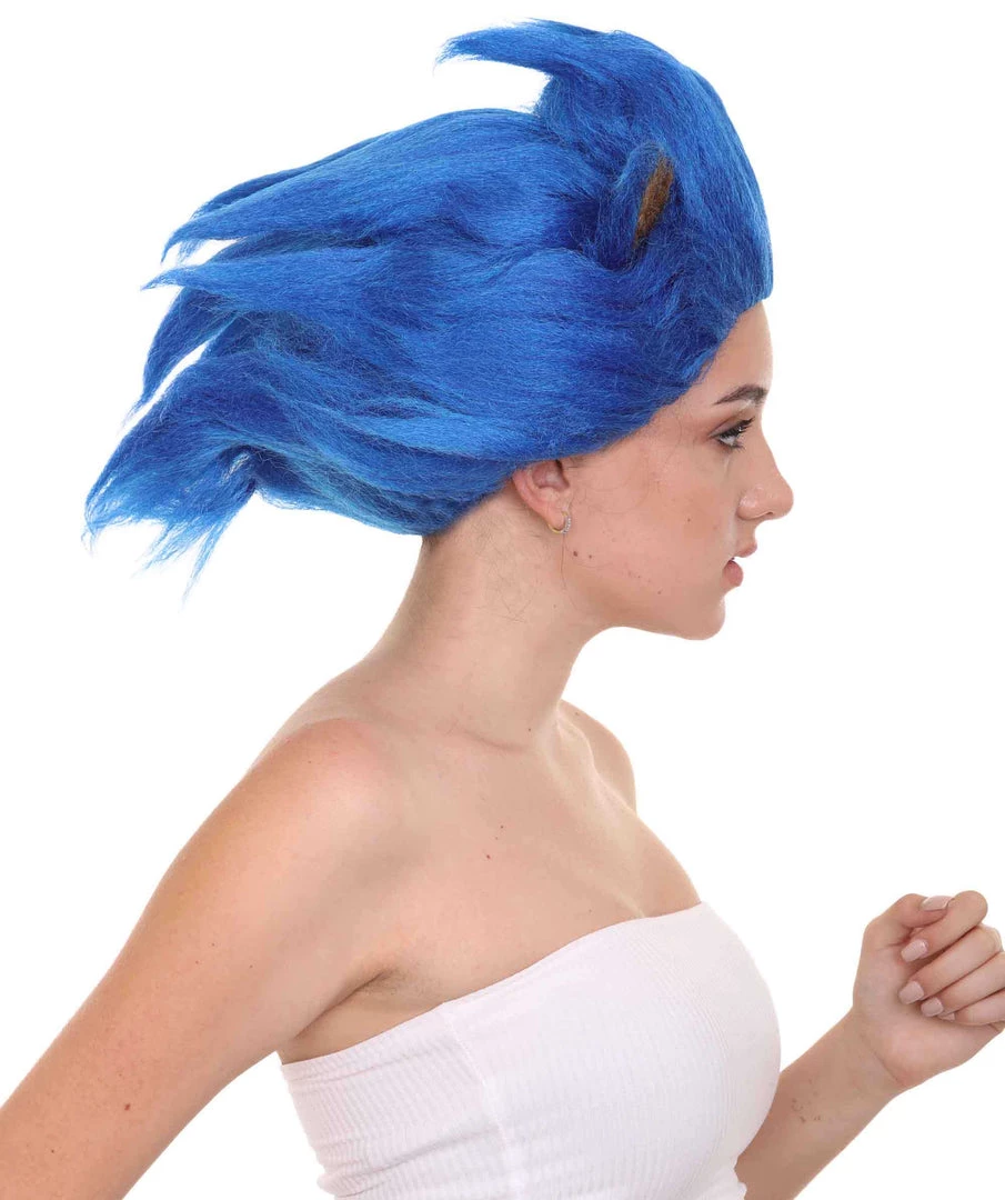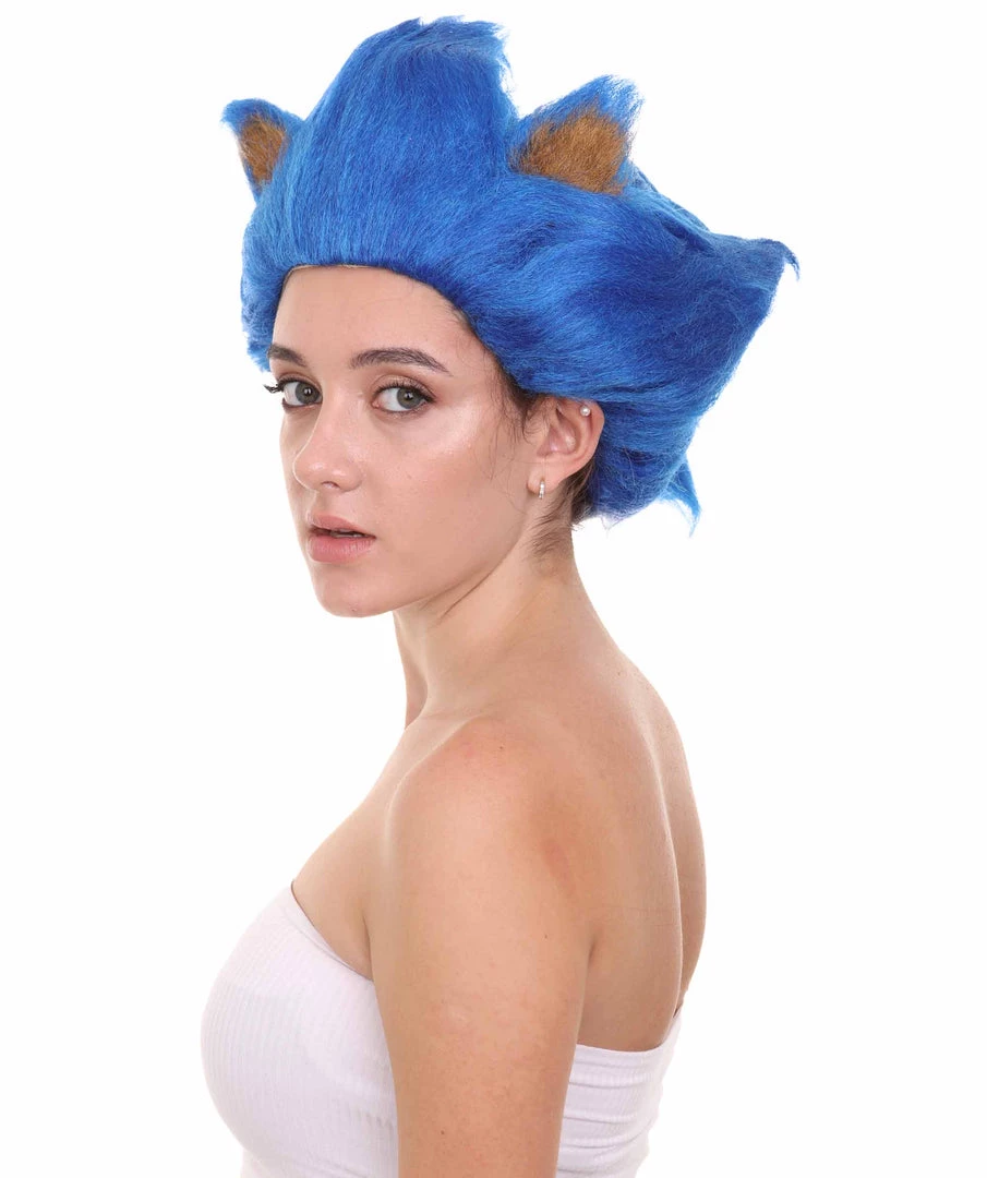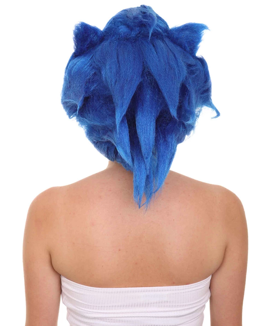 HPO Women’s Spiked Long Blue Cosplay Hedgehog Wig With Ears – Capless Cap Design