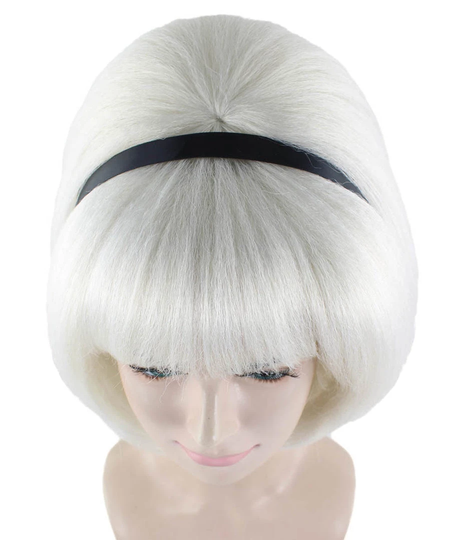 HPO Women’s Womens 60’s Lady Wig With Headband | White Vintage Wig | Premium Breathable Capless Cap