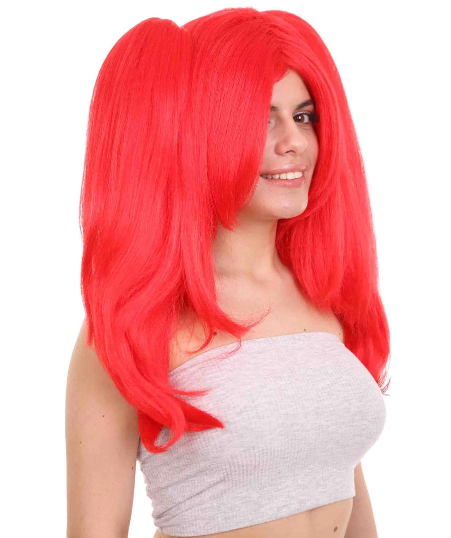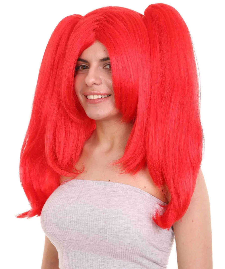 HPO Women’s Womens Clown Girl Ponytail Red Wig | Super Jumbo Character Cosplay Halloween Wig | Premium Breathable Capless Cap