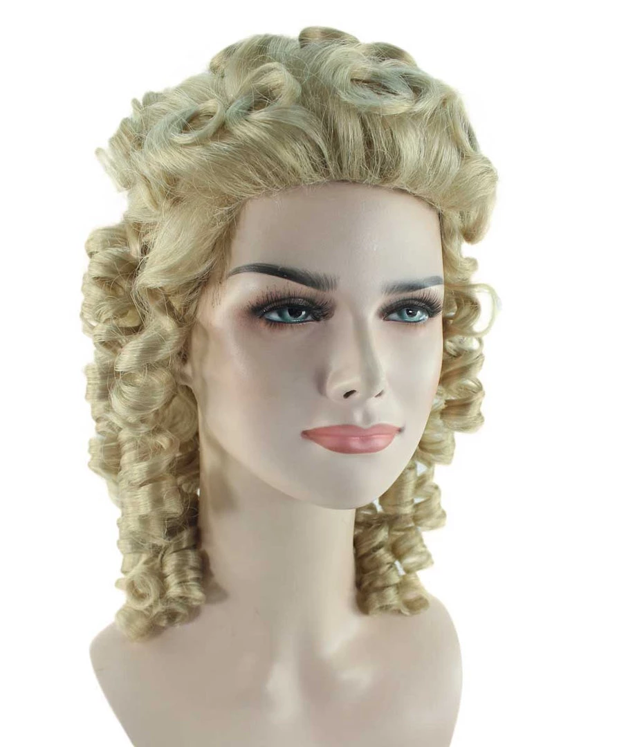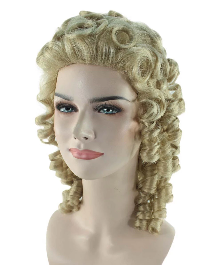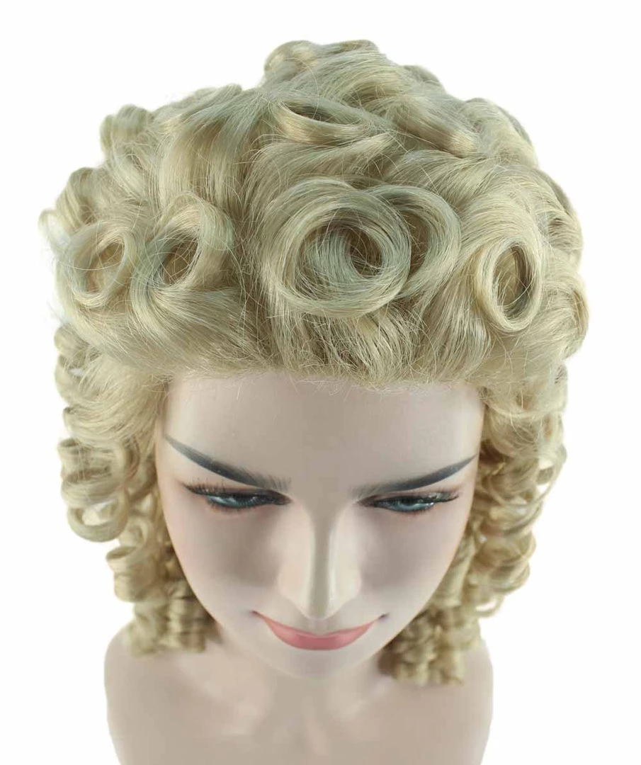HPO Women’s Womens Colonial Blonde Curly Wig | Historical Character Cosplay Halloween Wig | Premium Breathable Capless Cap