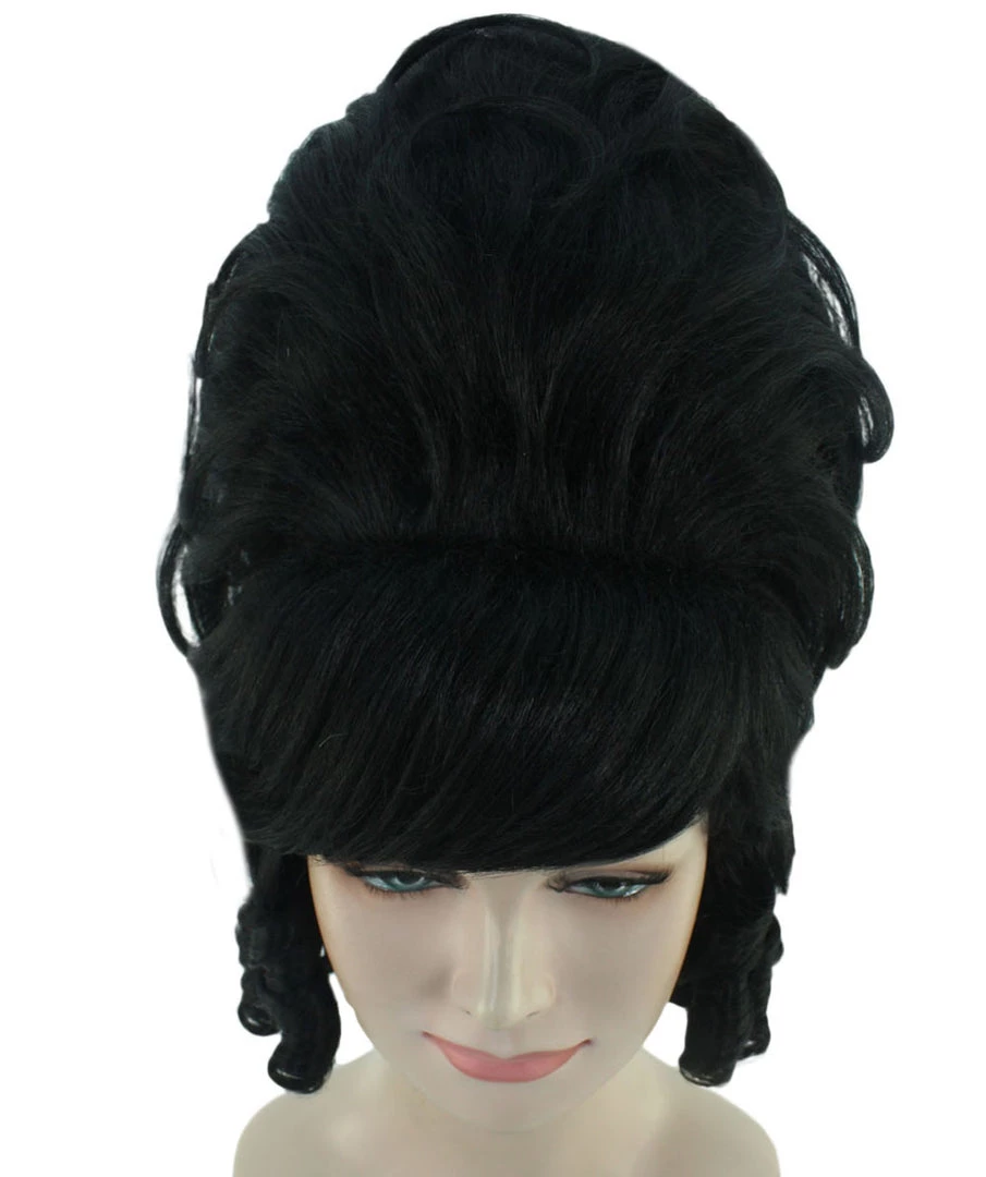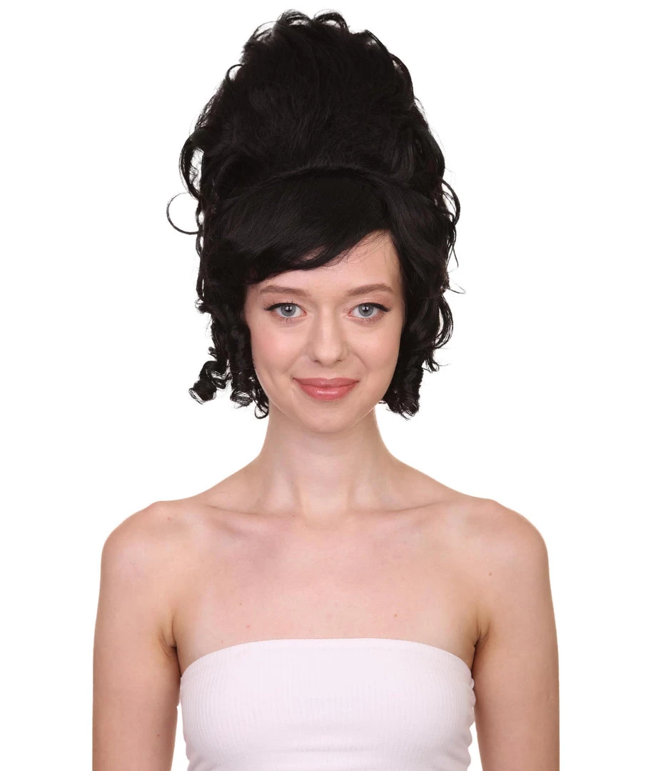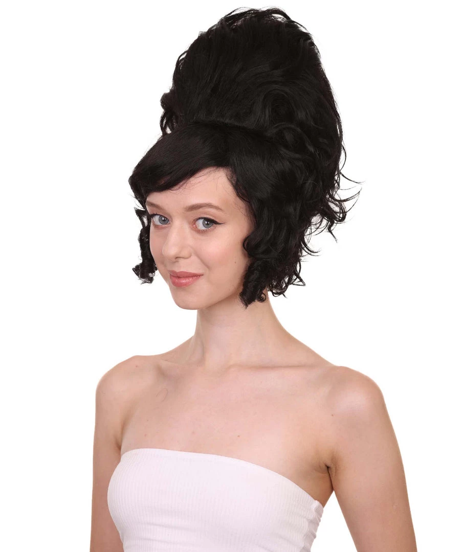 HPO Women’s Womens Colonial Lady 18th Century Curly Wig | Black Historical Halloween Wig | Premium Breathable Capless Cap