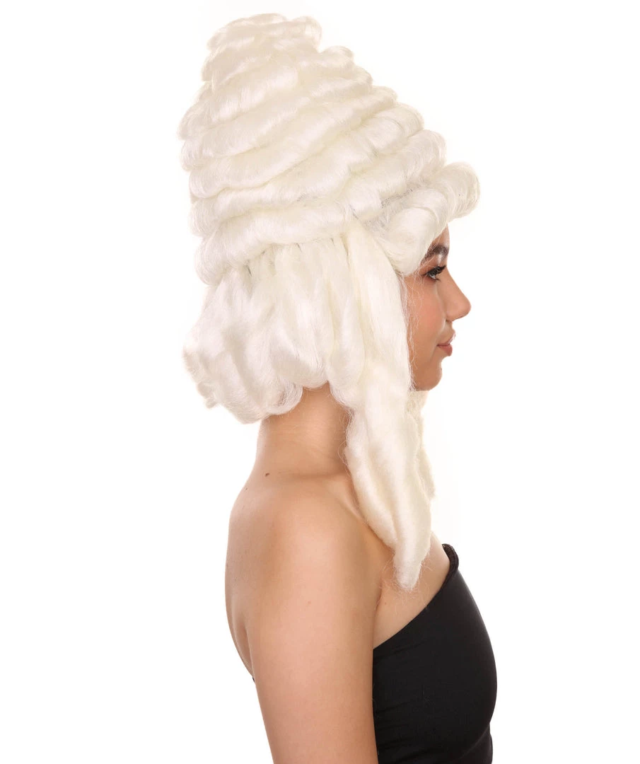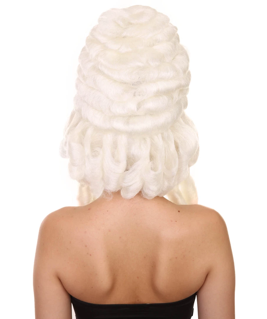 HPO Women’s Womens Colonial Lady’s 18th Century Curly Wig | White Historical Cosplay Wig | Premium Breathable Capless Cap