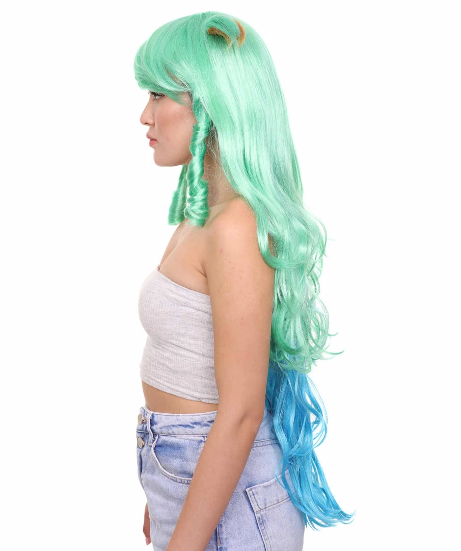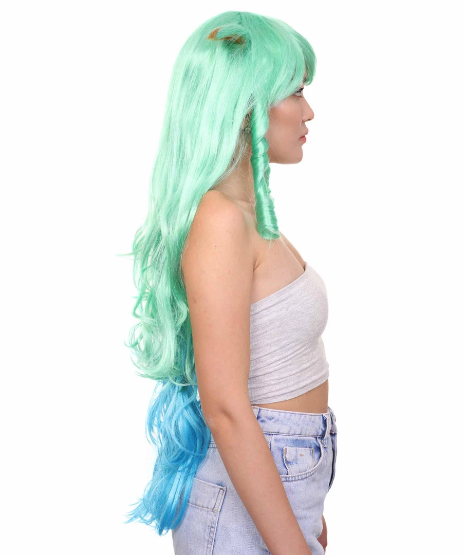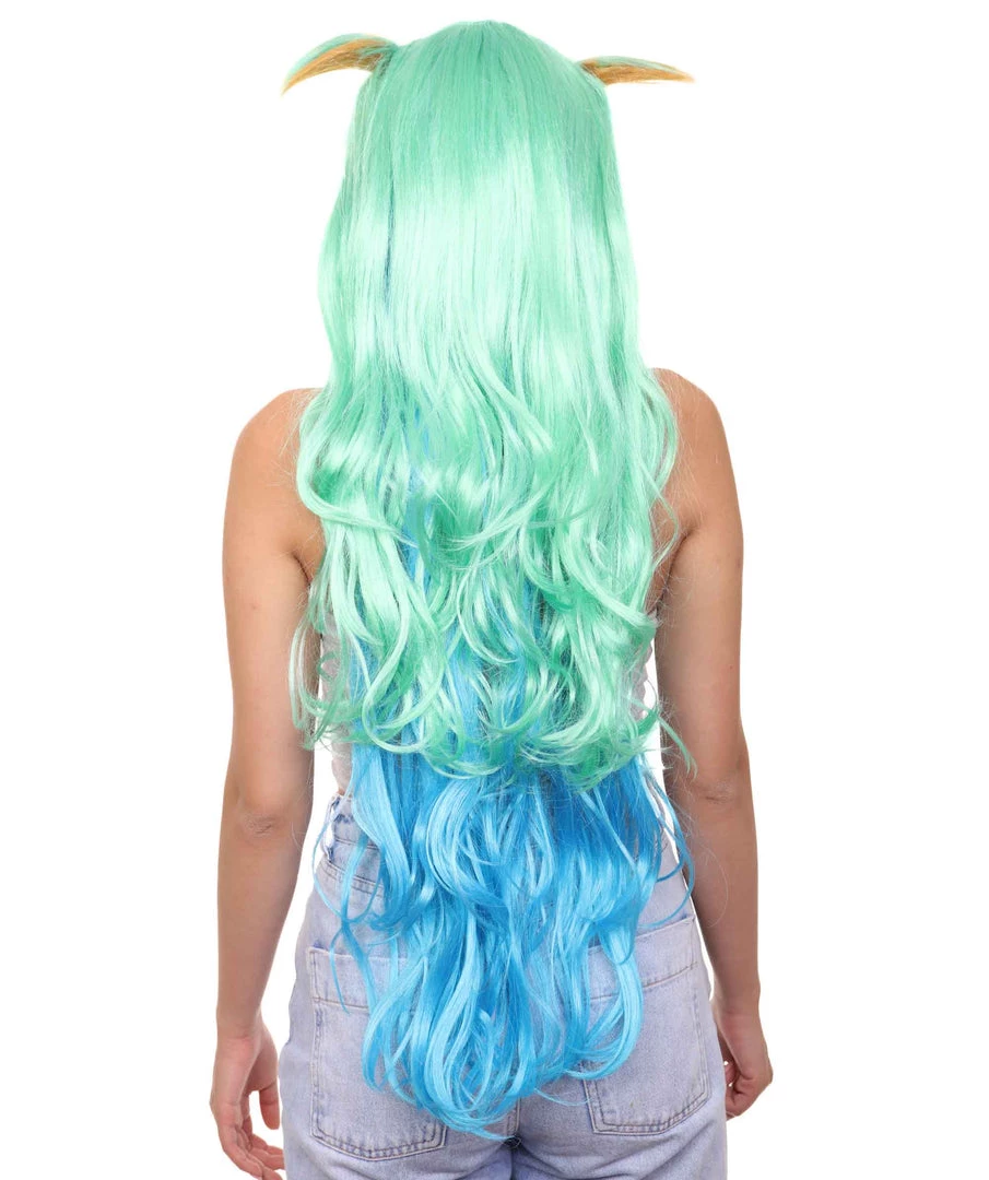 HPO Women’s Womens Gaming Wig | Green And Blue Anime Cosplay Wigs | Premium Breathable Capless Cap