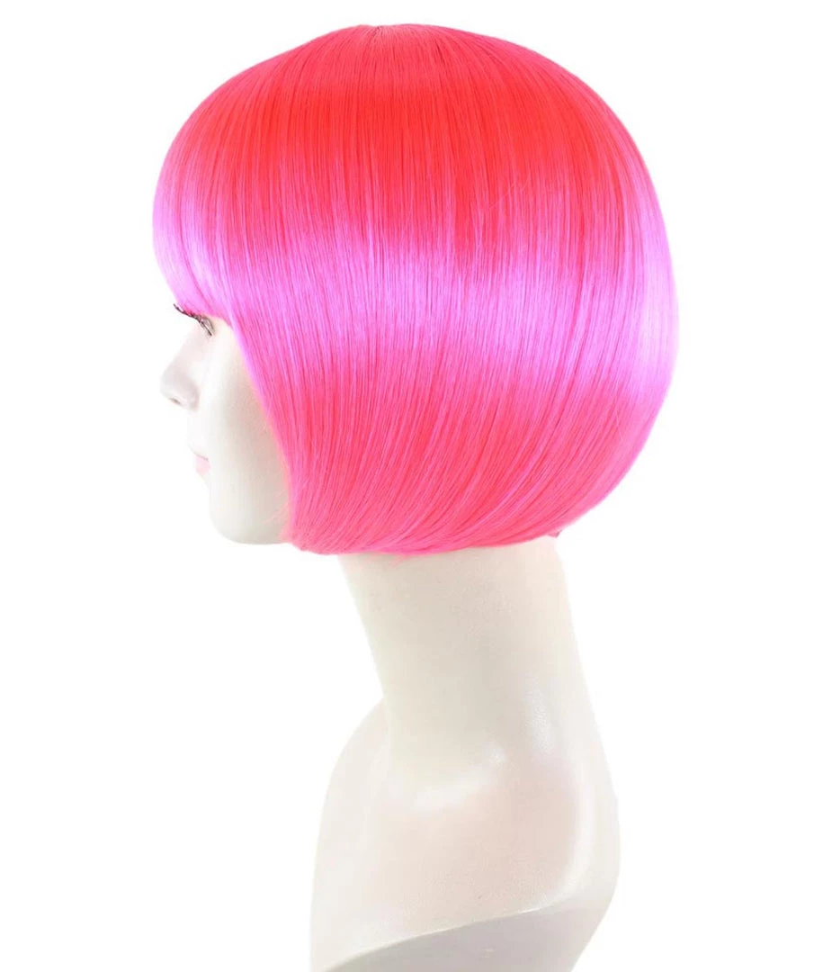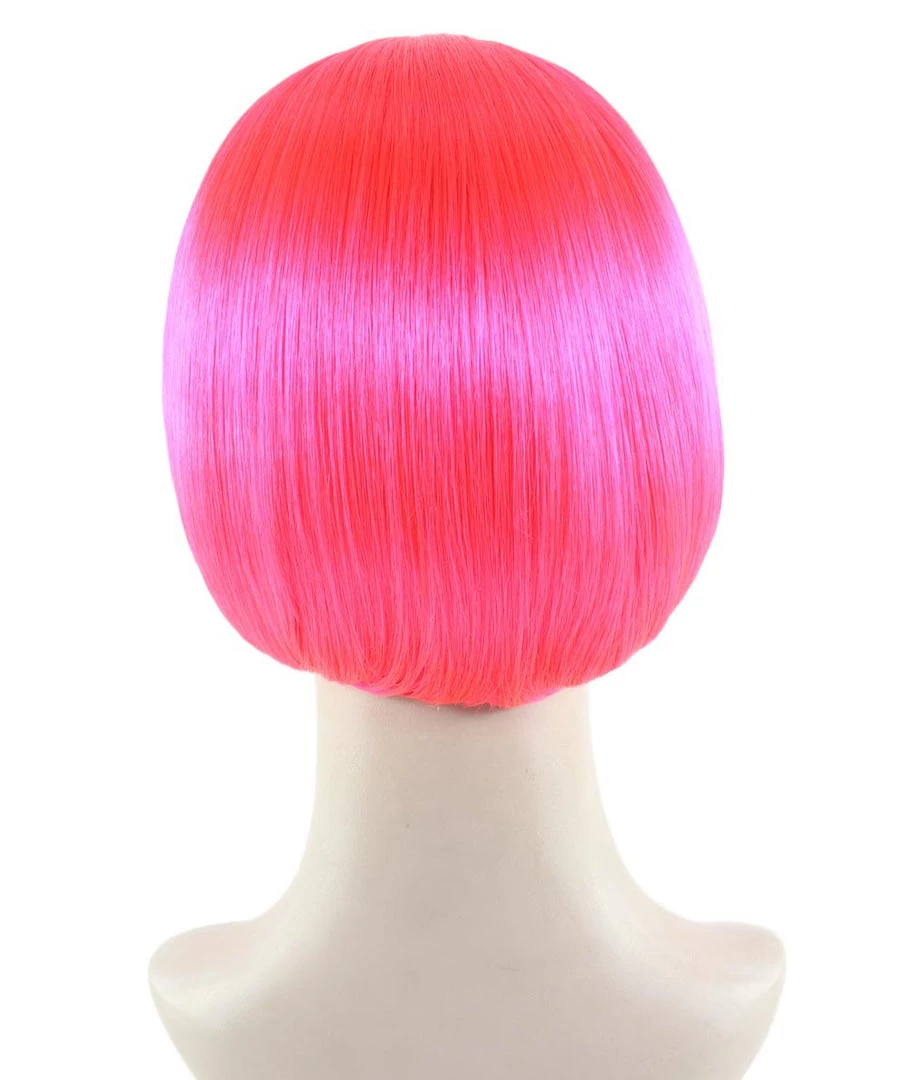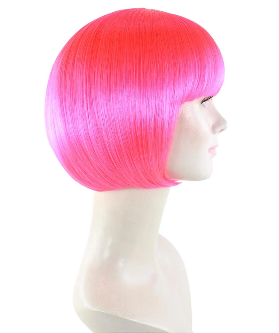 HPO Women’s Womens Neon Pink Bob Wig | Party Ready Fancy Cosplay Halloween Wig | Premium Breathable Capless Cap
