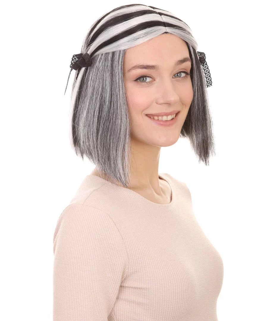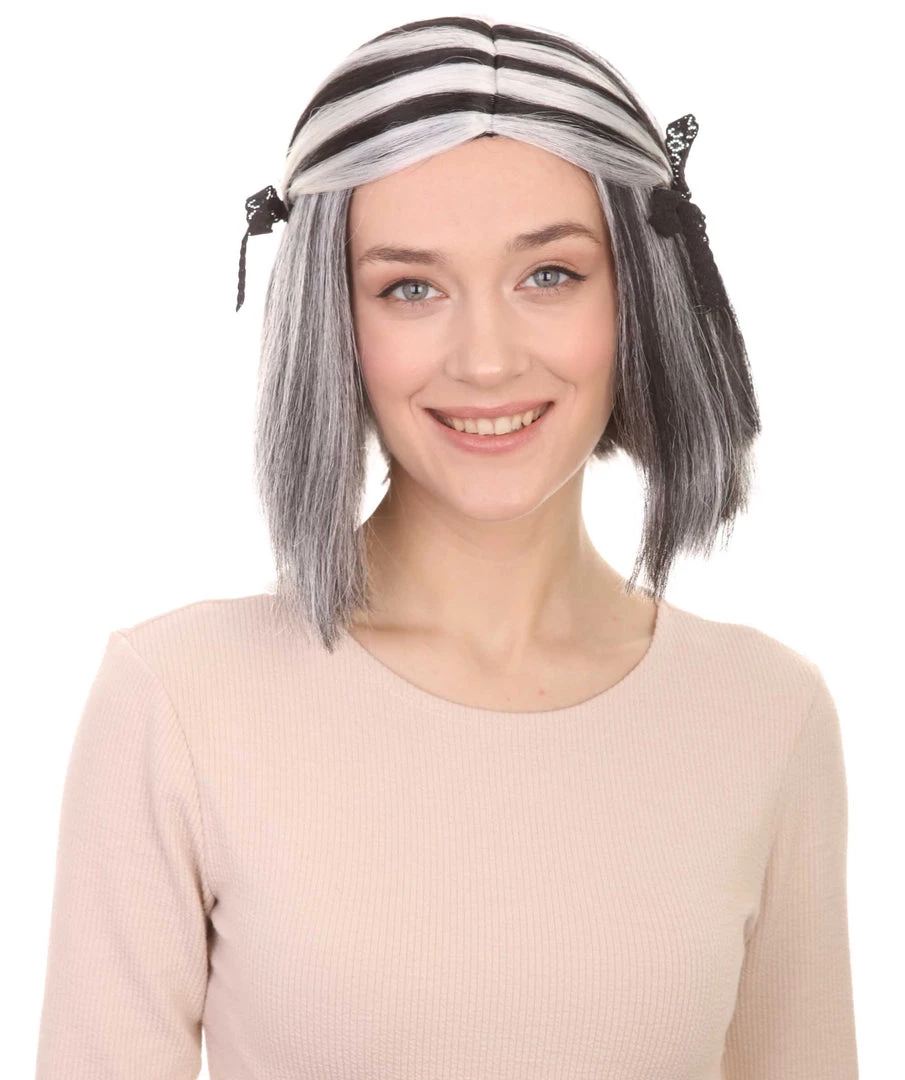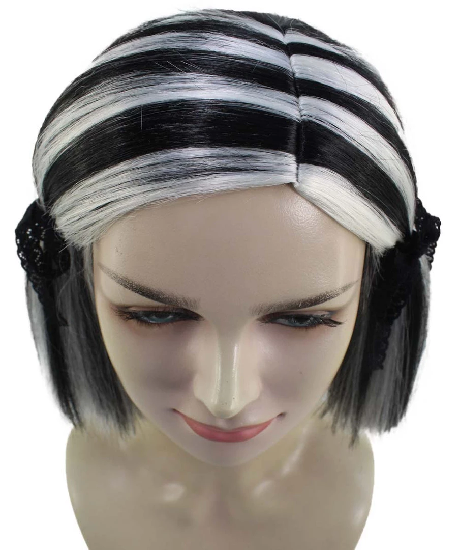 HPO Women’s Womens Pretty Doll Wig | Black & White Storybook & Fairytale Wigs | Premium Breathable Capless Cap
