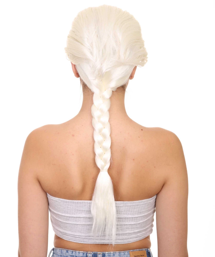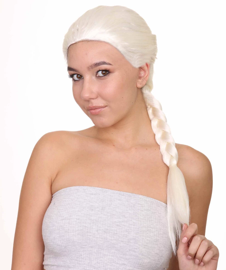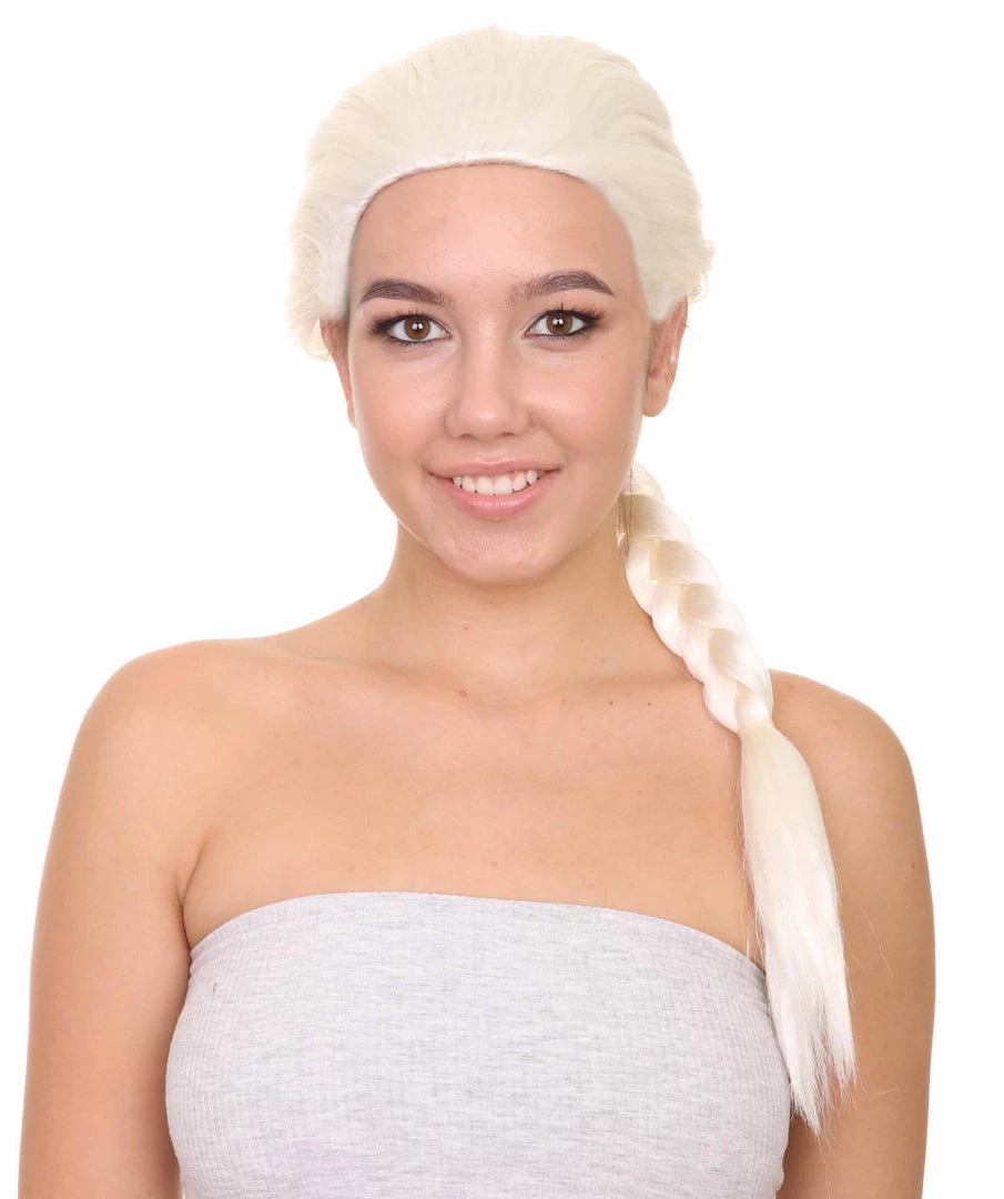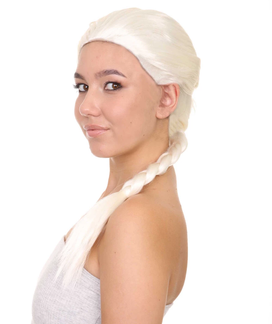 HPO Women’s Womens Princess Wig | Traditional Braided White Royal Wig | Premium Breathable Capless Cap