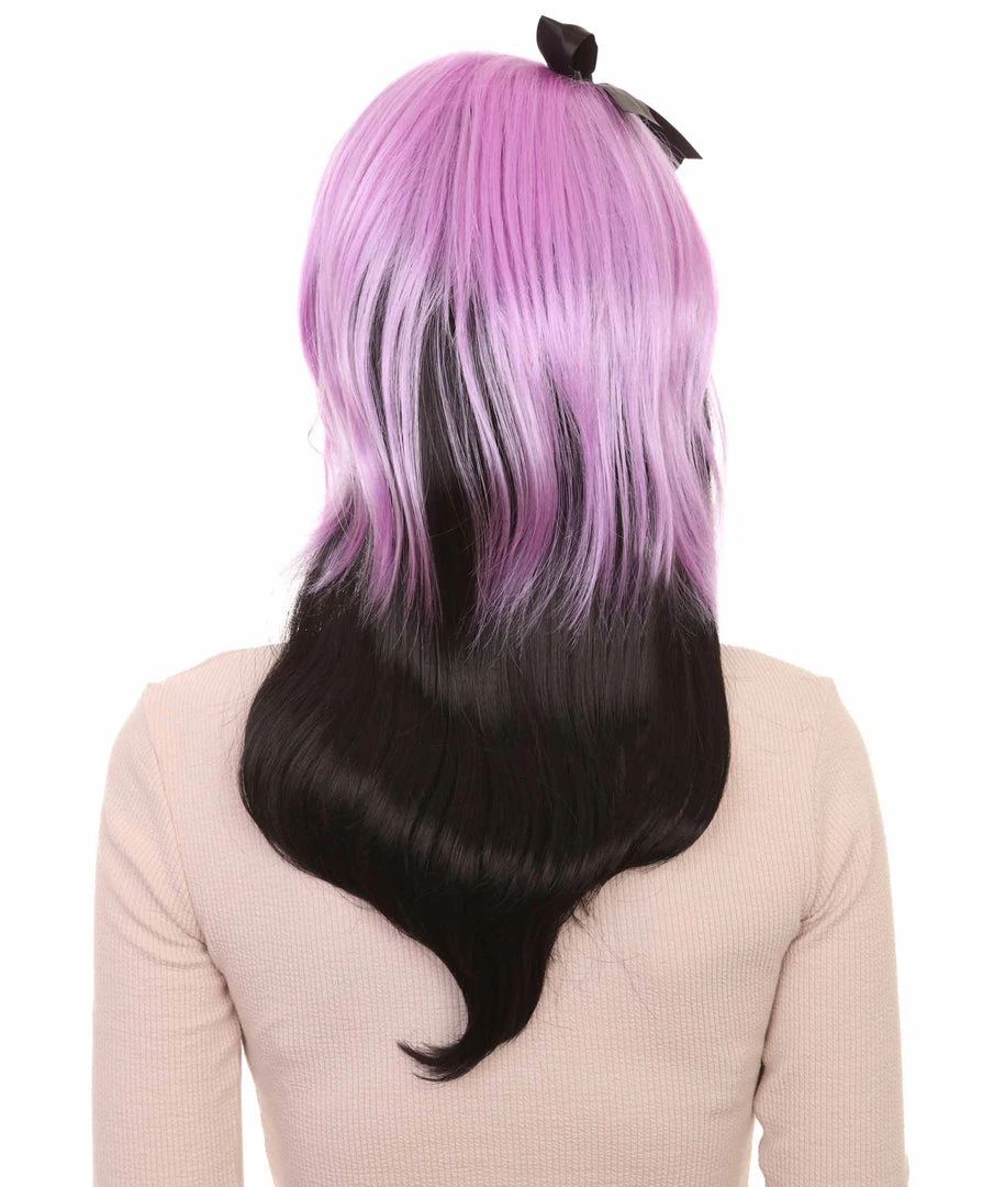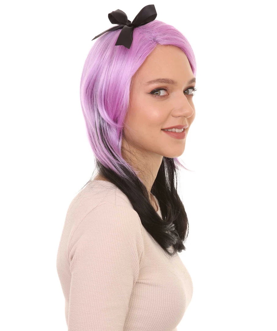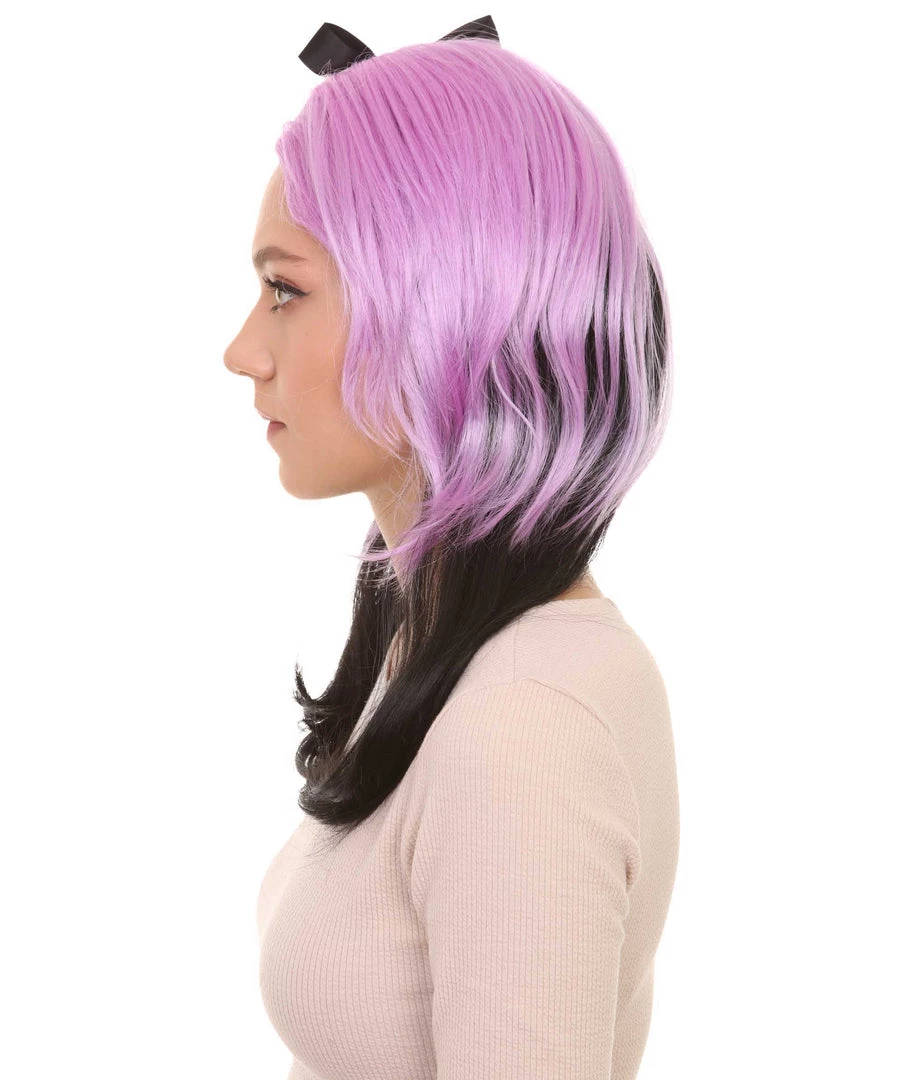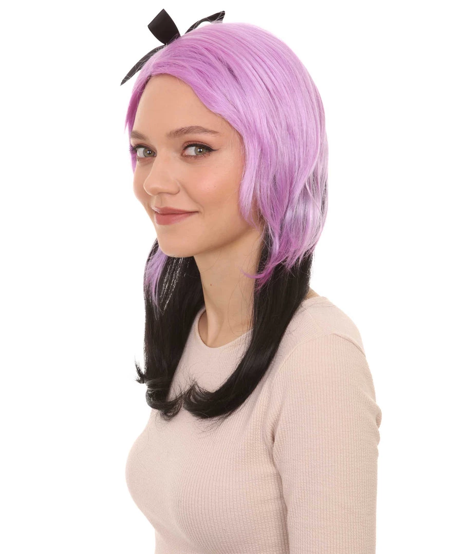 HPO Women’s Womens Purple Black Cheerleader Wig | Party Ready Fancy Cosplay Halloween Wig | Premium Breathable Capless Cap