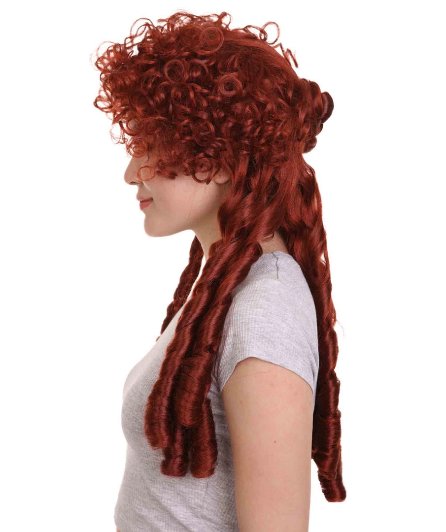 HPO Women’s Womens Renaissance Lady Colonial Wig | Red Historical Wigs | Premium Breathable Capless Cap
