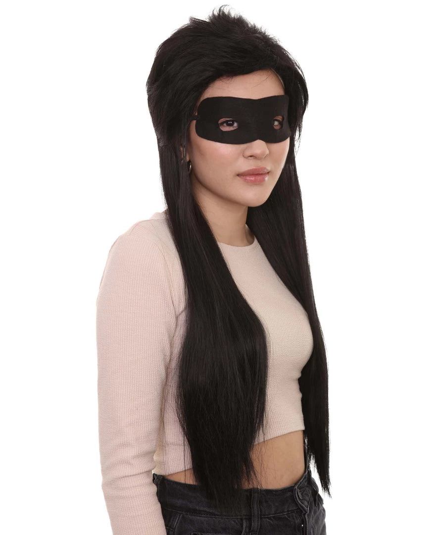 HPO Women’s Womens Superwoman 25′ Wig | Violet Parr Black Wig With Mask Set | TV/Movie Wigs | Premium Breathable Capless Cap
