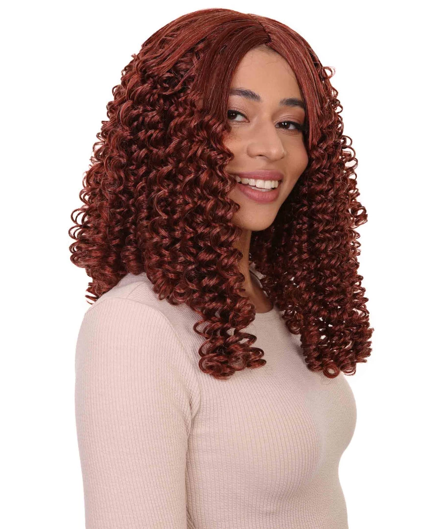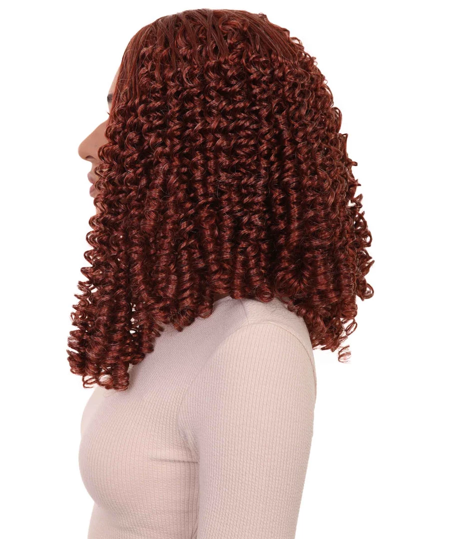 HPO Womens 18th Century Colonial Lady Curly Wig | Auburn Historical Wig | Premium Breathable Capless Cap