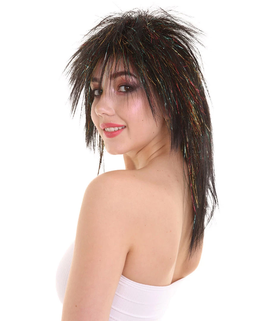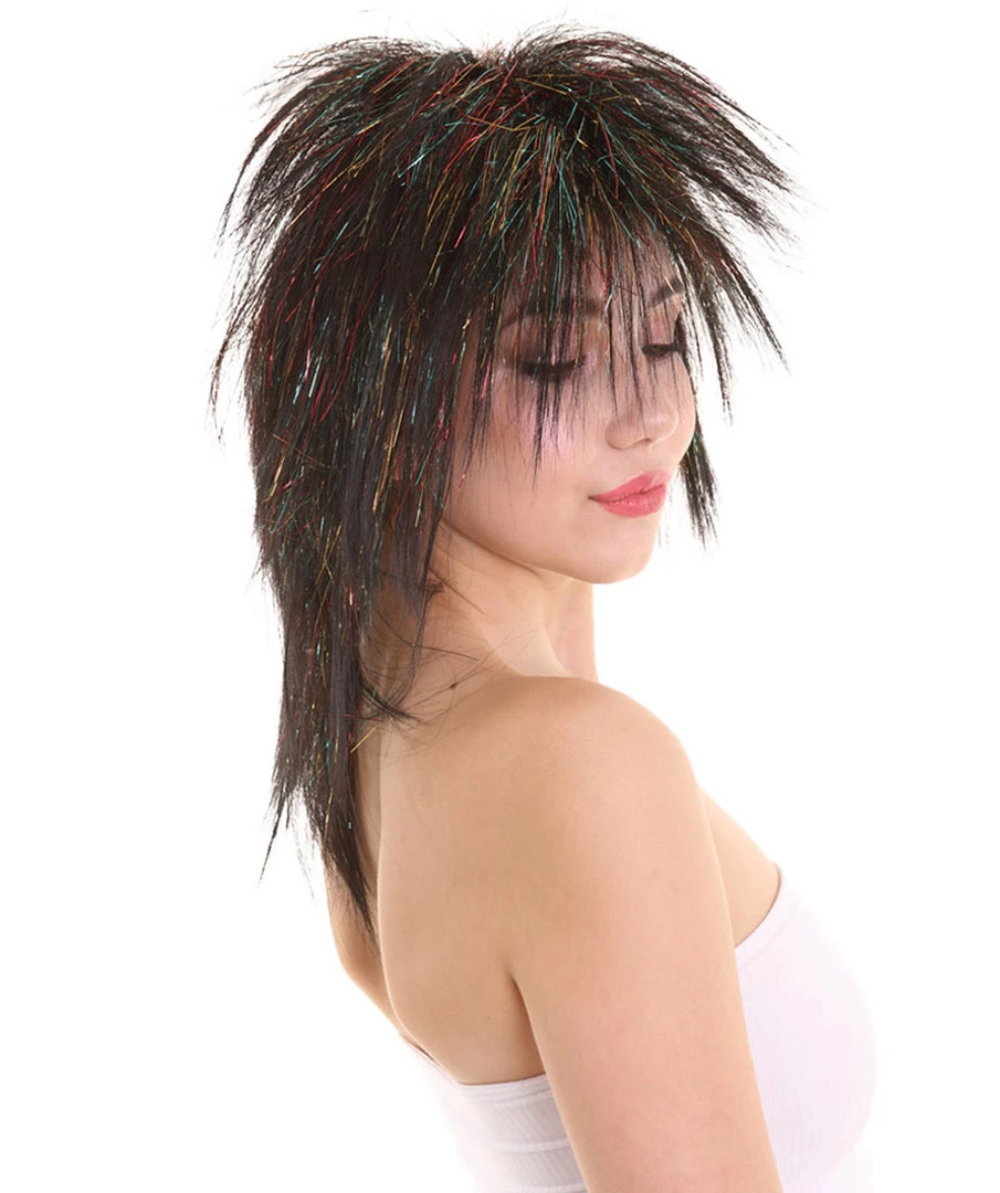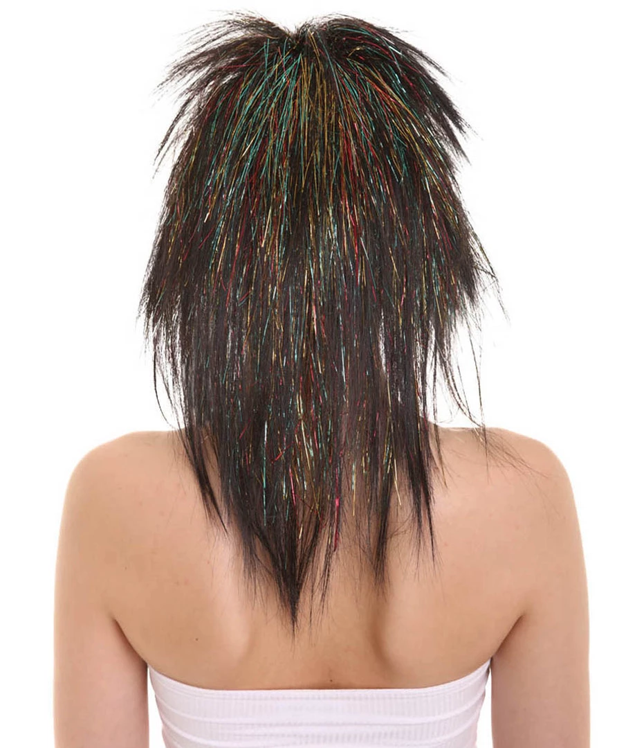 Be the first to review “HPO Womens Black Rave Mullet With Gold Iridescent Tinsel Highlights | Halloween Rave Wig | Premium Breathable Capless Cap” Cancel reply