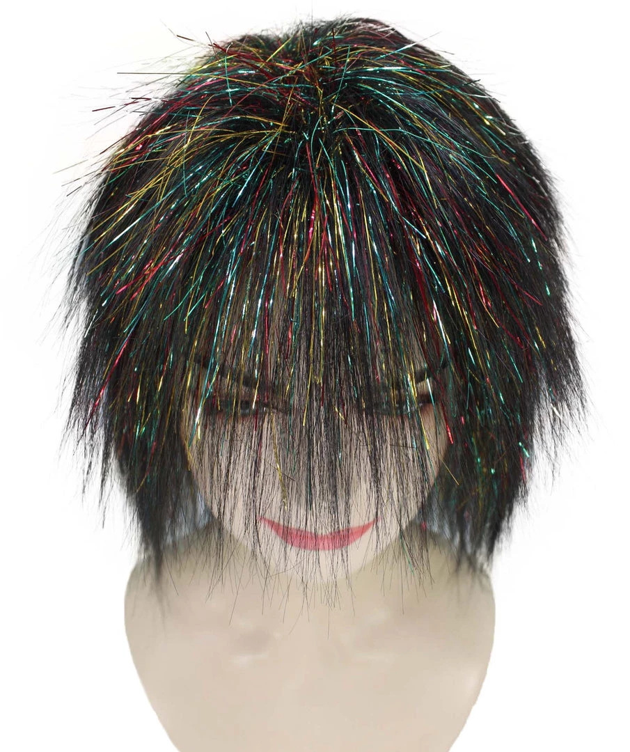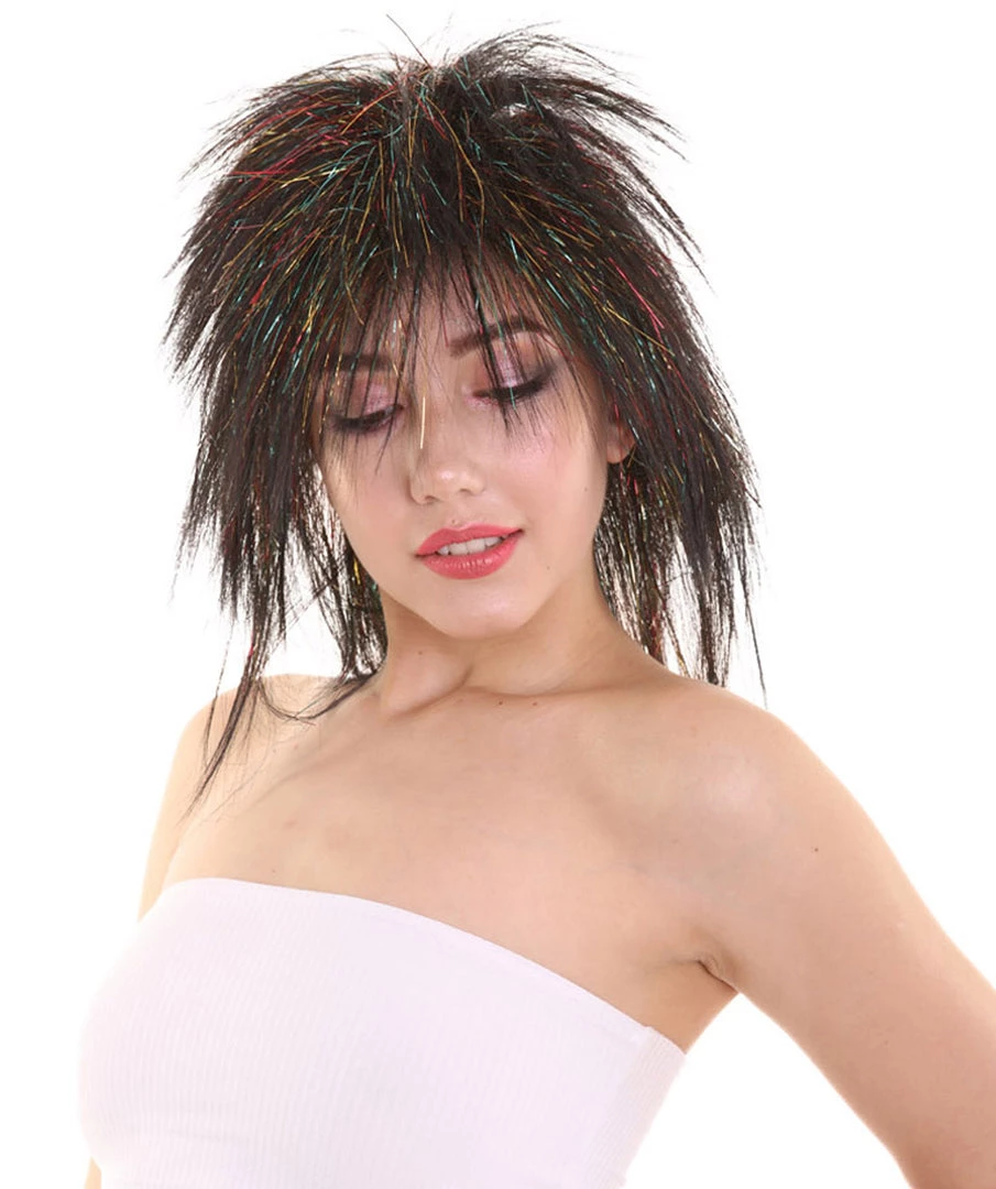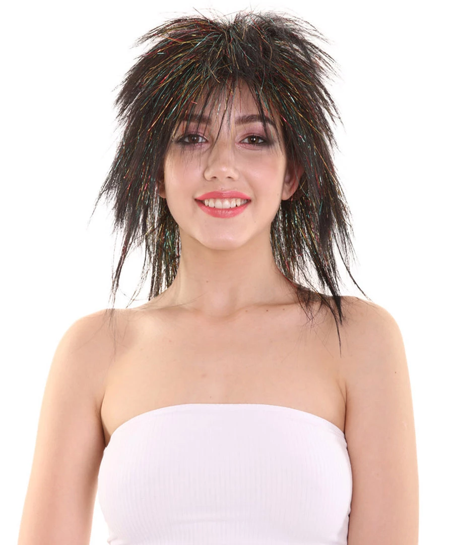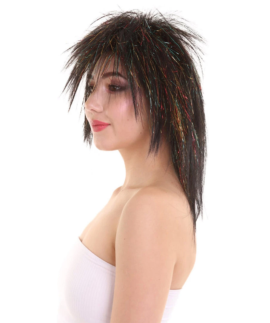 Be the first to review “HPO Womens Black Rave Mullet With Gold Iridescent Tinsel Highlights | Halloween Rave Wig | Premium Breathable Capless Cap” Cancel reply