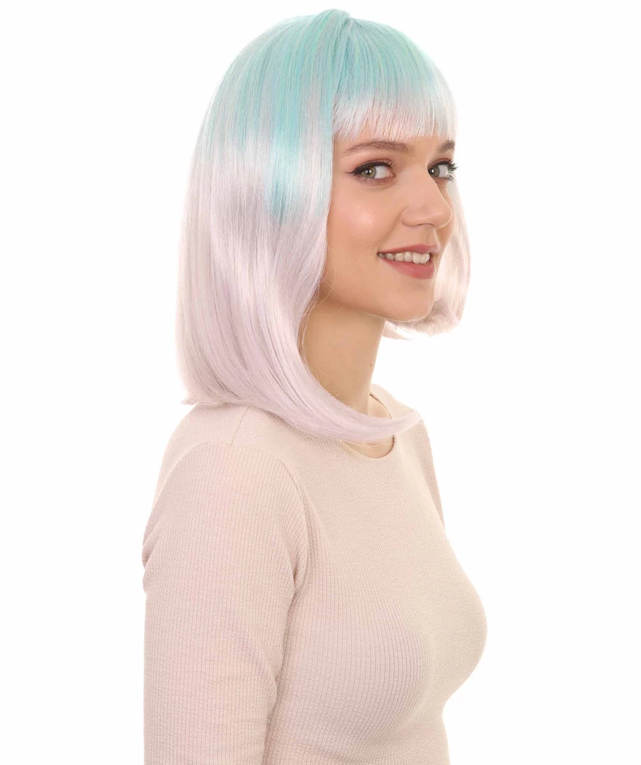 HPO Womens Blue White Ombre Doll Bob Wig | Ombre Fashion Wigs | Premium Breathable Capless Cap