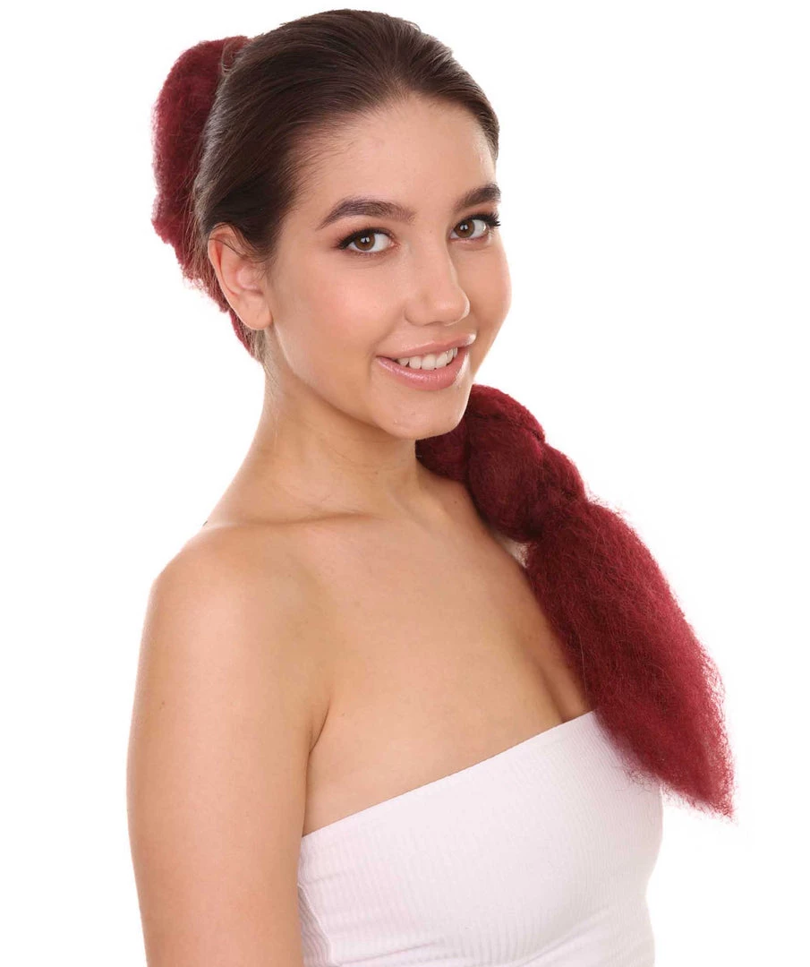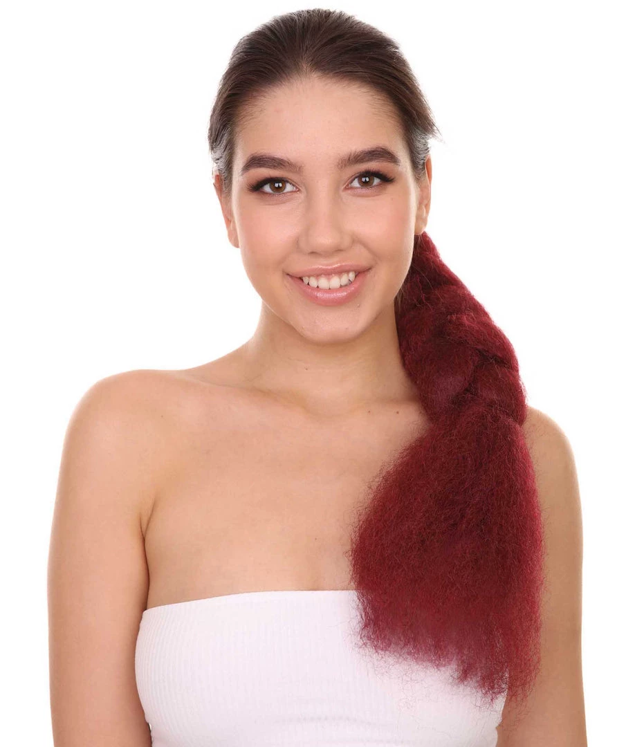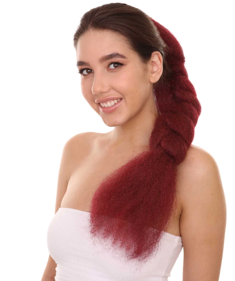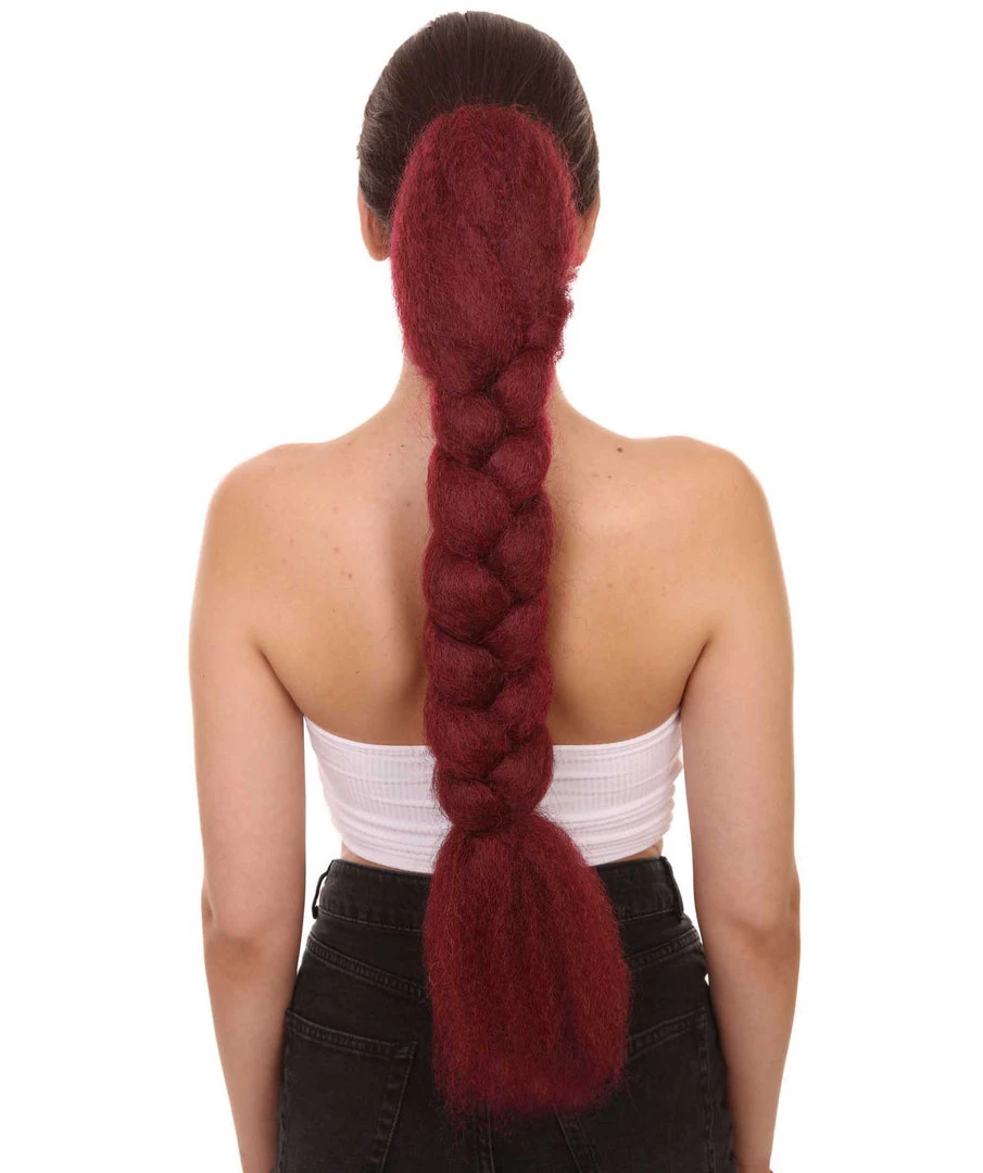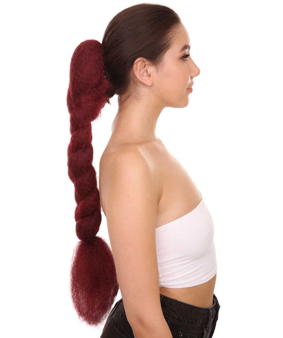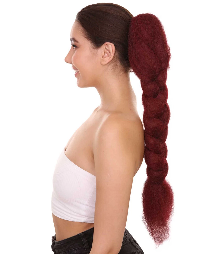 HPO Womens Braid Ponytail 29″ Hair Clip Extension | Burgundy TV/Movie Wigs | Premium Breathable Capless Cap