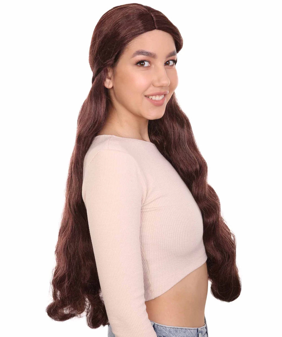 HPO Womens Brown Long Wig | TV/Movie Wigs | Premium Breathable Capless Cap